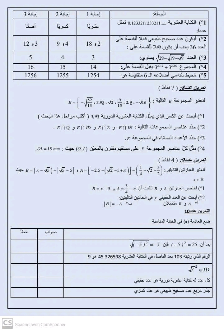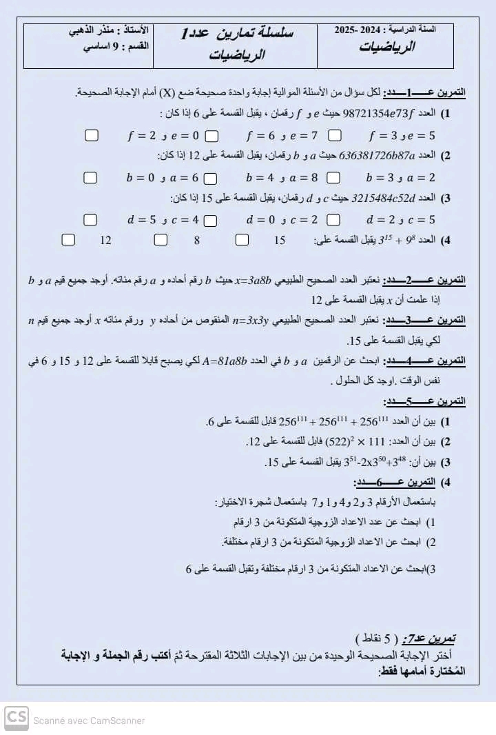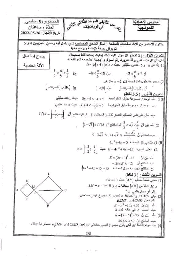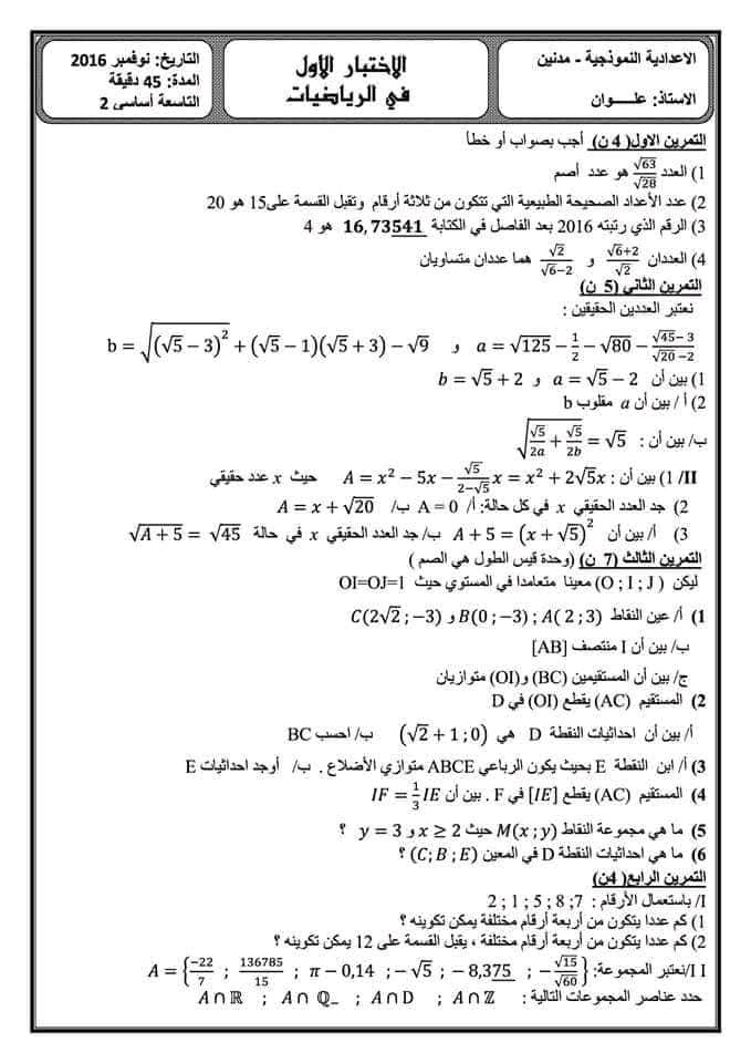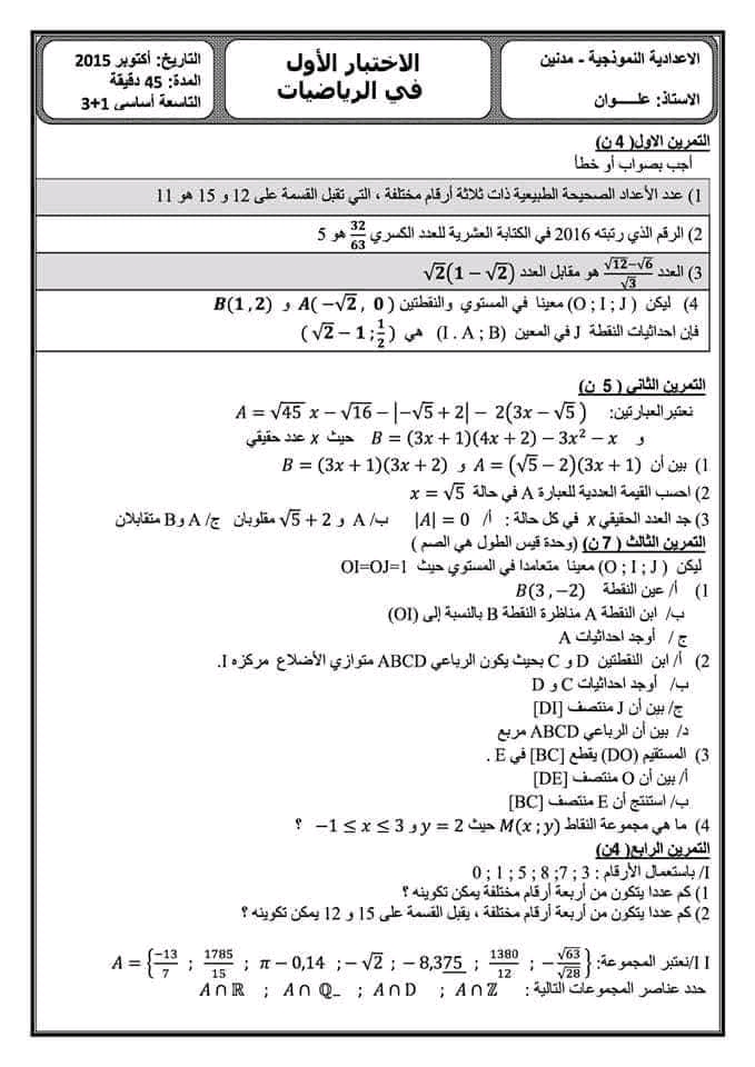تاسعة نموذجي سلسلة تمارين للمراجعة في مادة الرياضيات