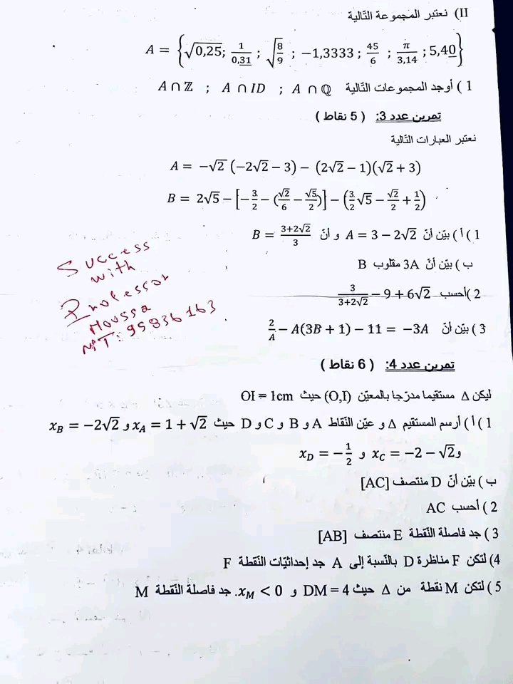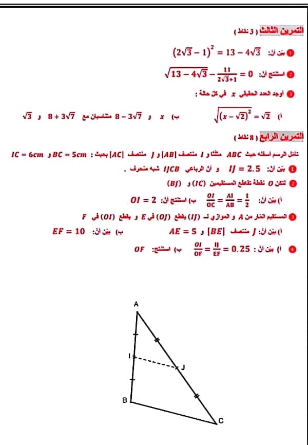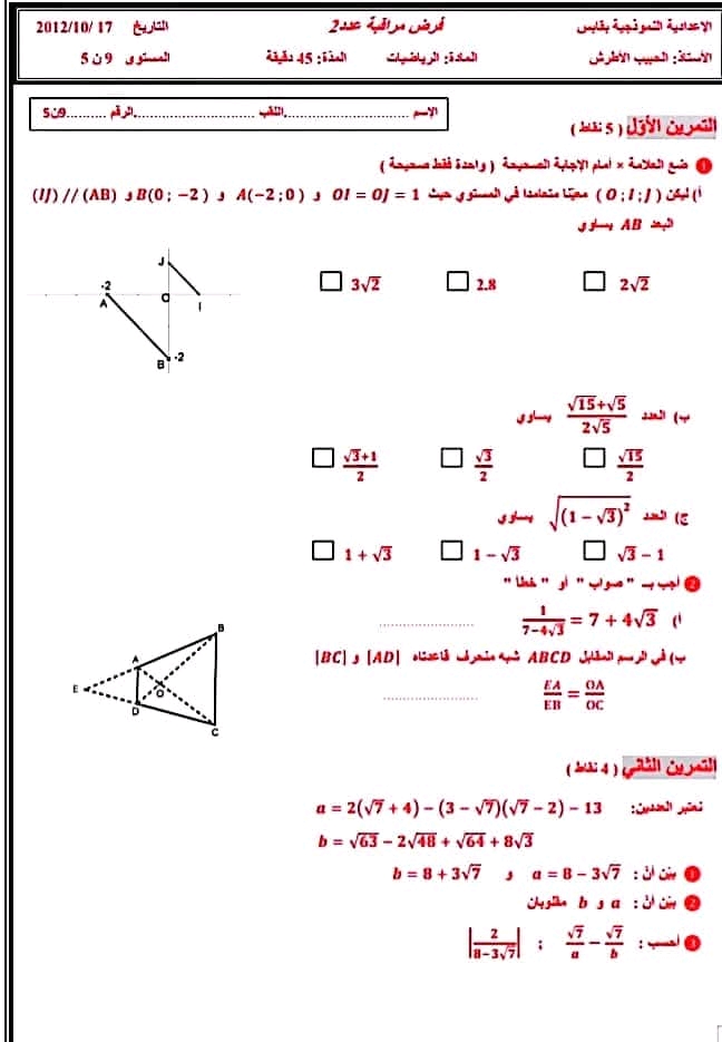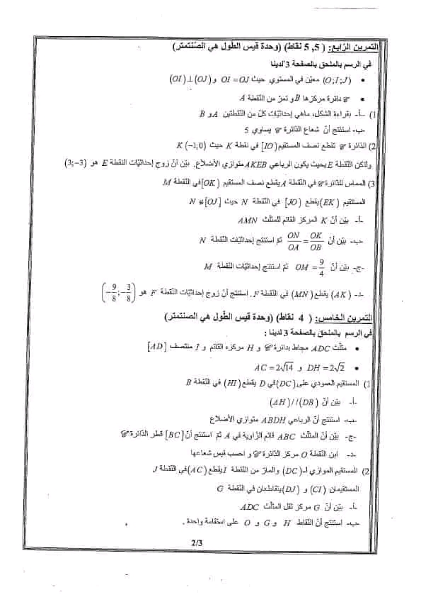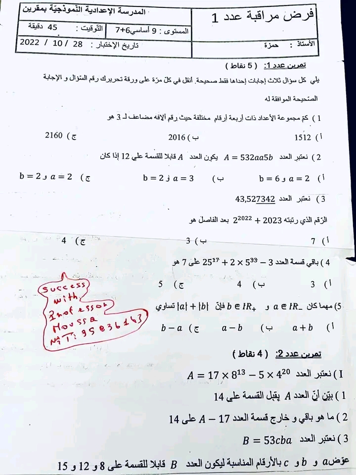 تاسعة نموذجي سلسلة تمارين للمراجعة في مادة الرياضيات