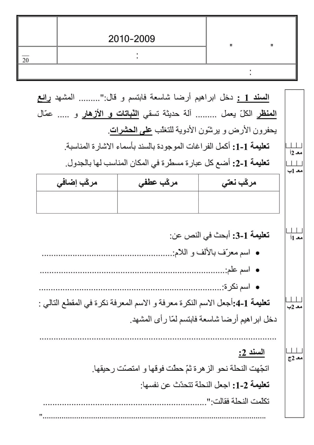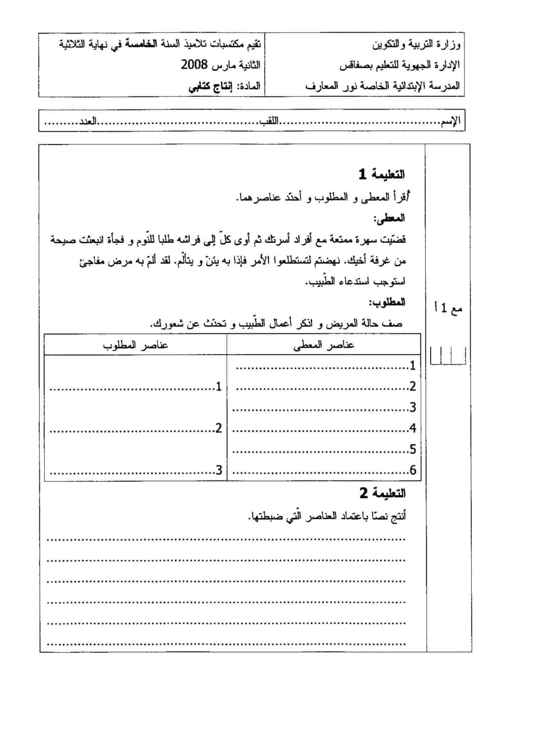 اختبار انتاج كتابي بالاصلاح سنة خامسة ث 2
