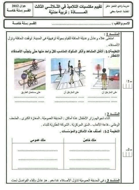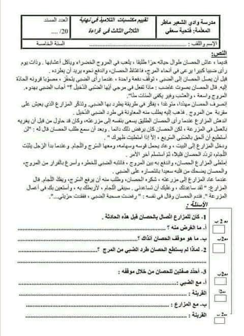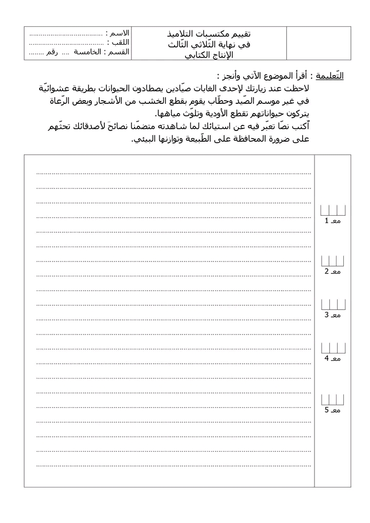 تقييم انتاج كتابي سنة خامسة