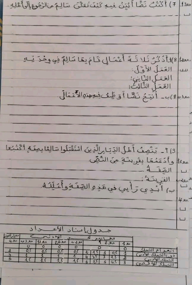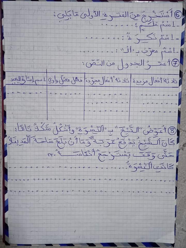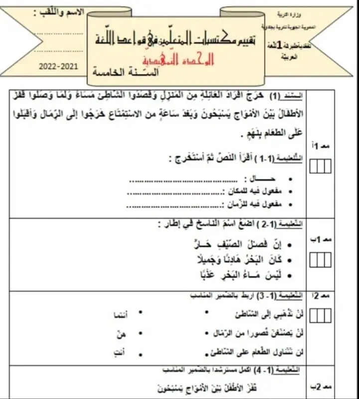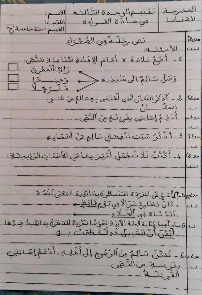تقييم الوحدة ااسادسة عربية