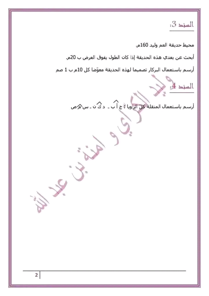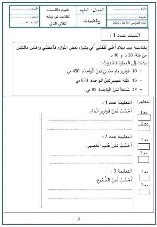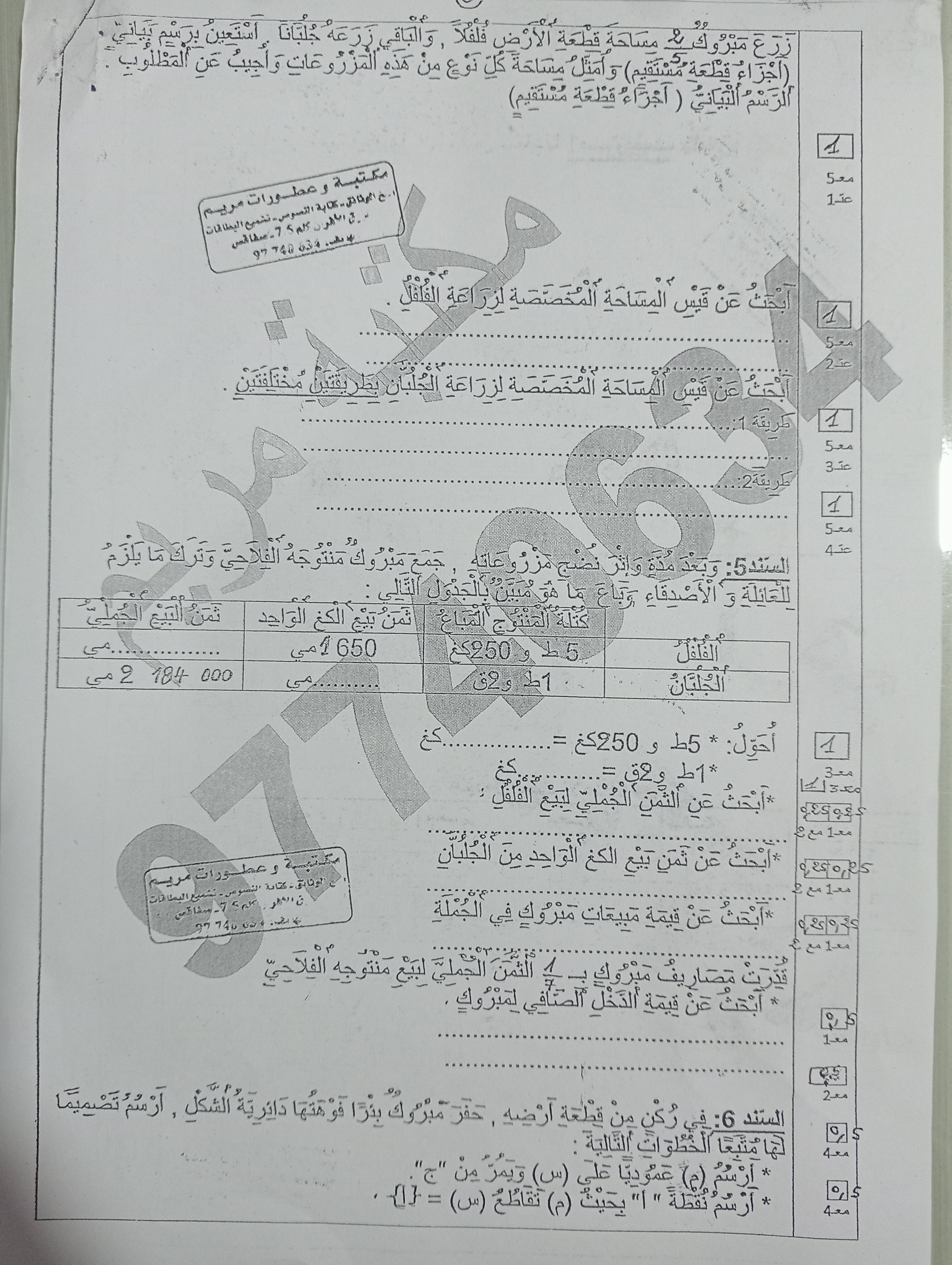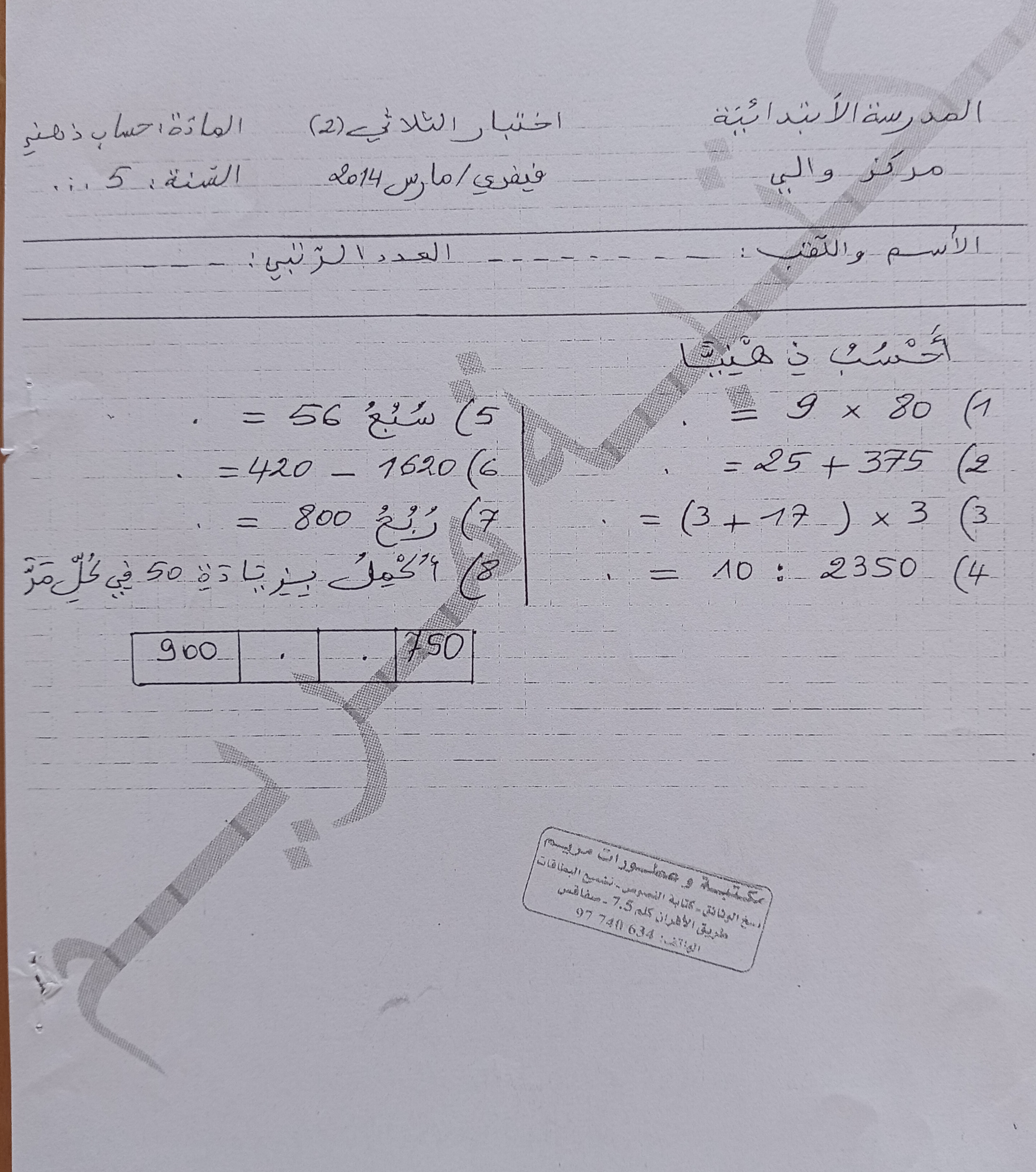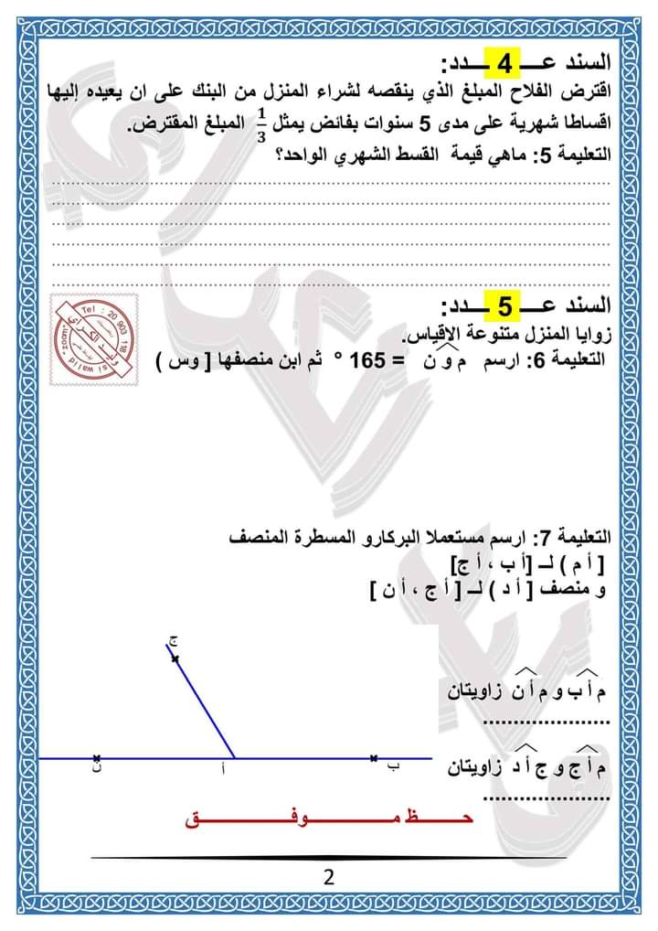 تقاييم رياضيات الثلاثي الثاني سنة خامسة