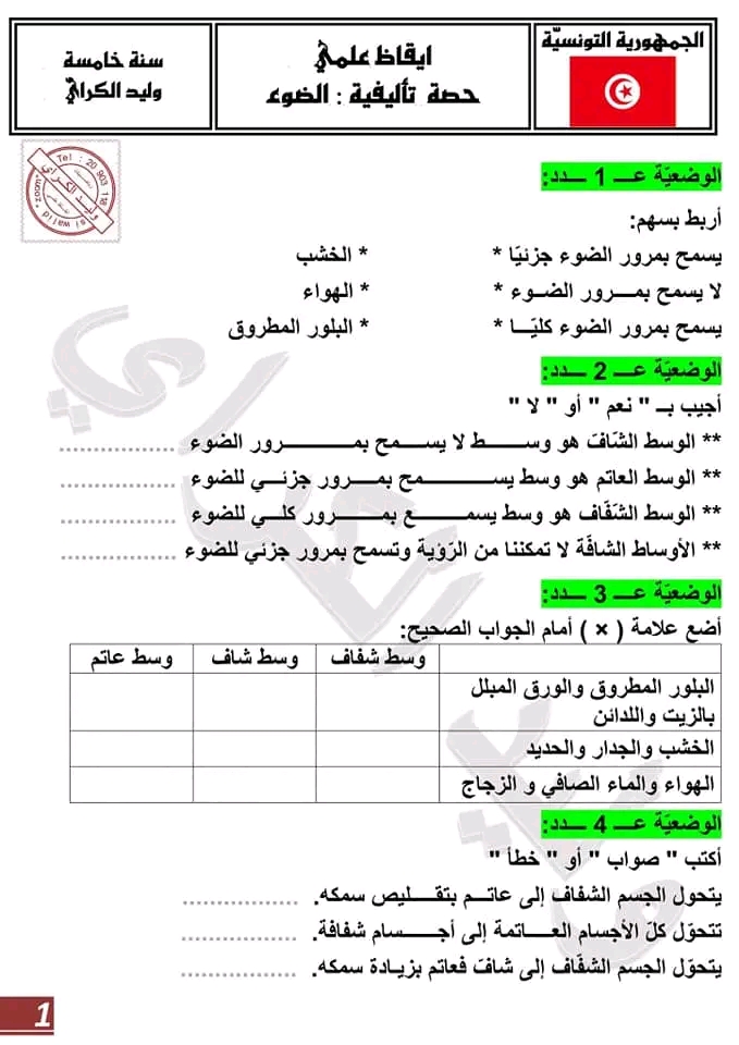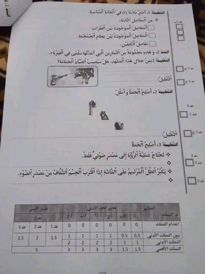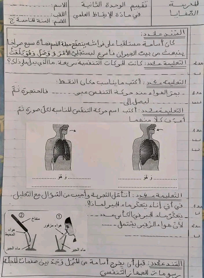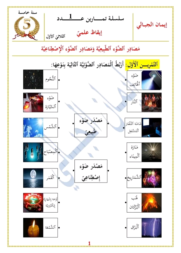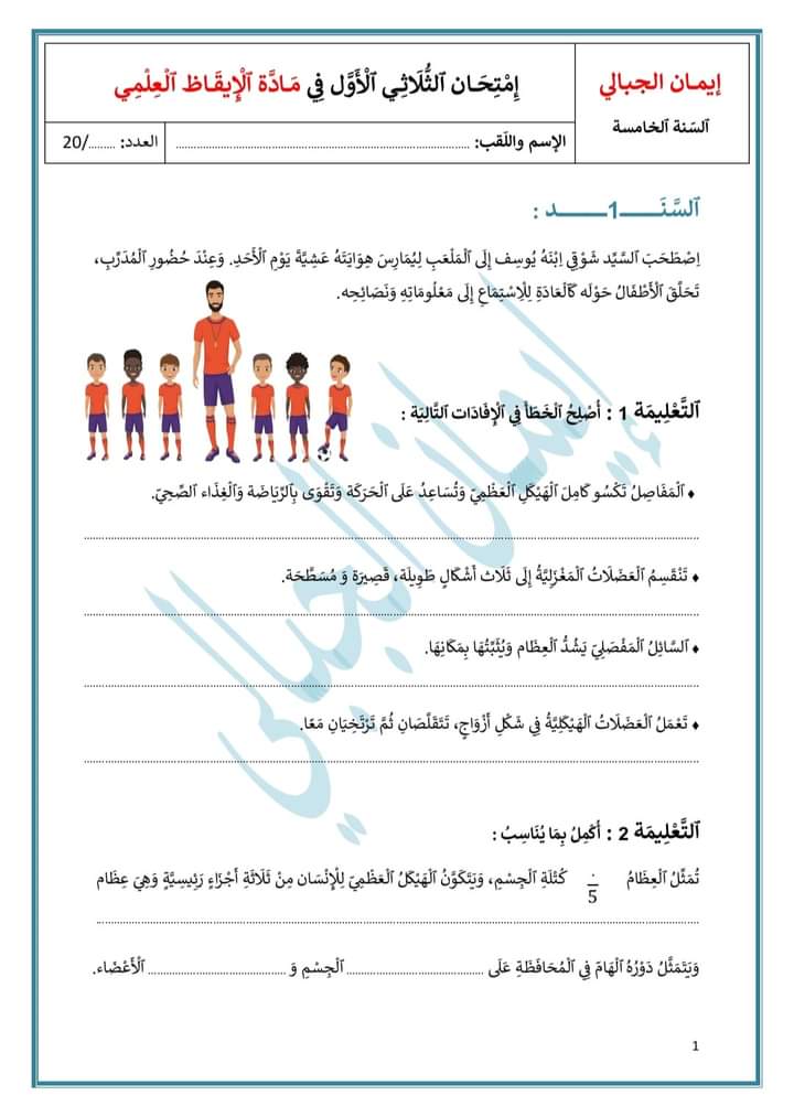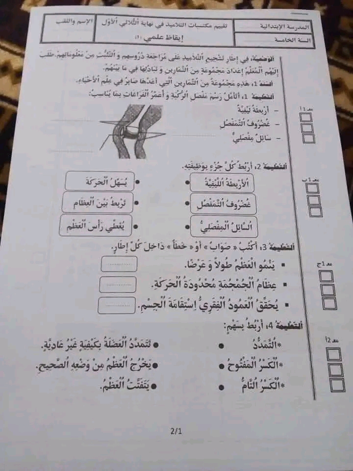 امتحان ايقاظ علمي ثلاثي أول سنة خامسة