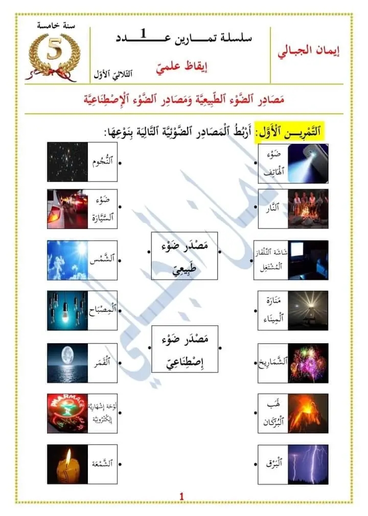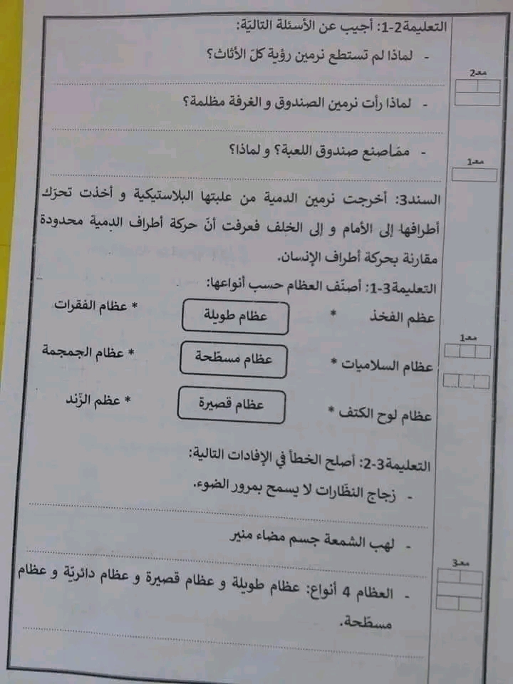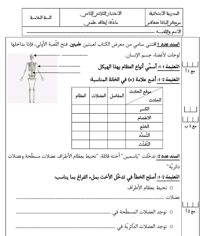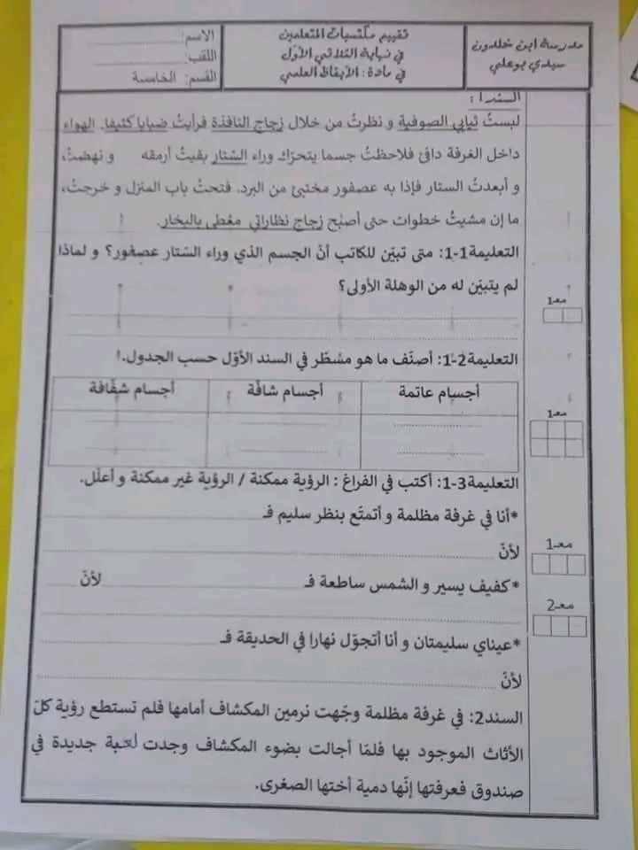 إمتحان ممتاز في مادة الإيقاظ العلمي مرفق بالإصلاح، لتلاميذ السنة الخامسة من التعليم الأساسي