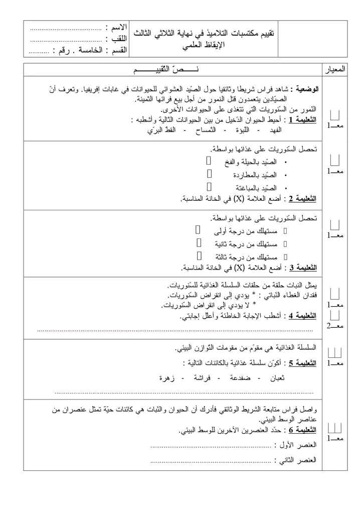 إيقاظ علمي - ثلاثي ثالث - سنة خامسة