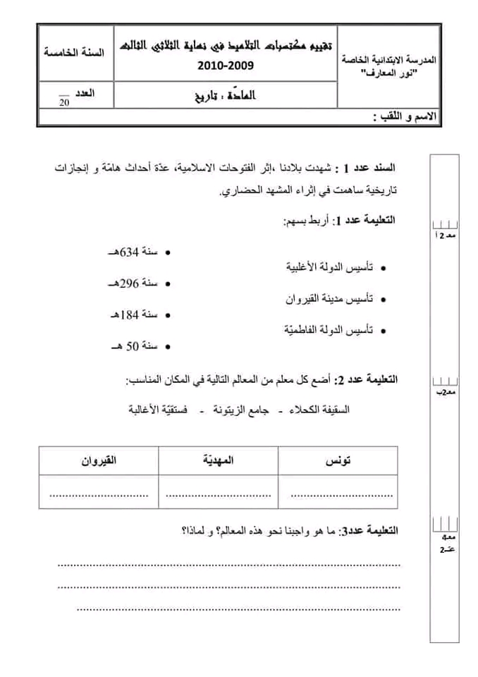امتحانات السنة الخامسة ثلاثي ثالث
