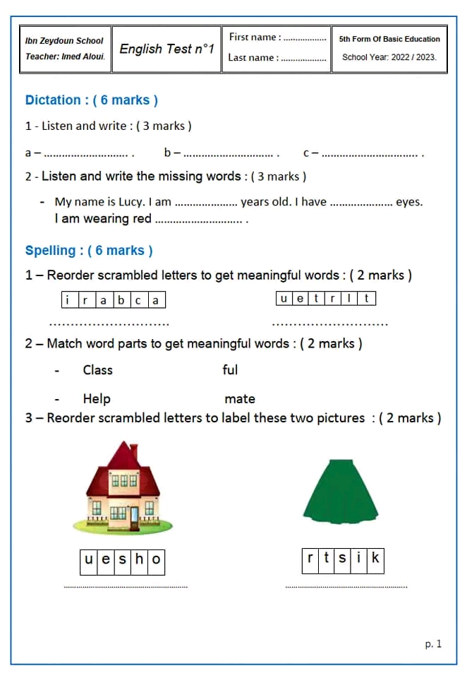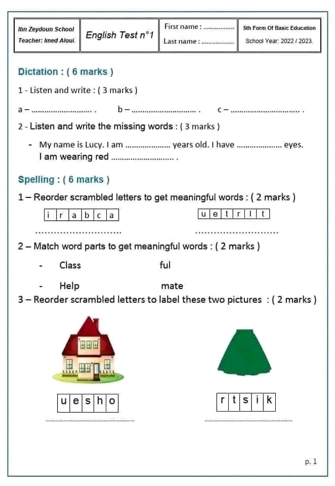 English Test n°1