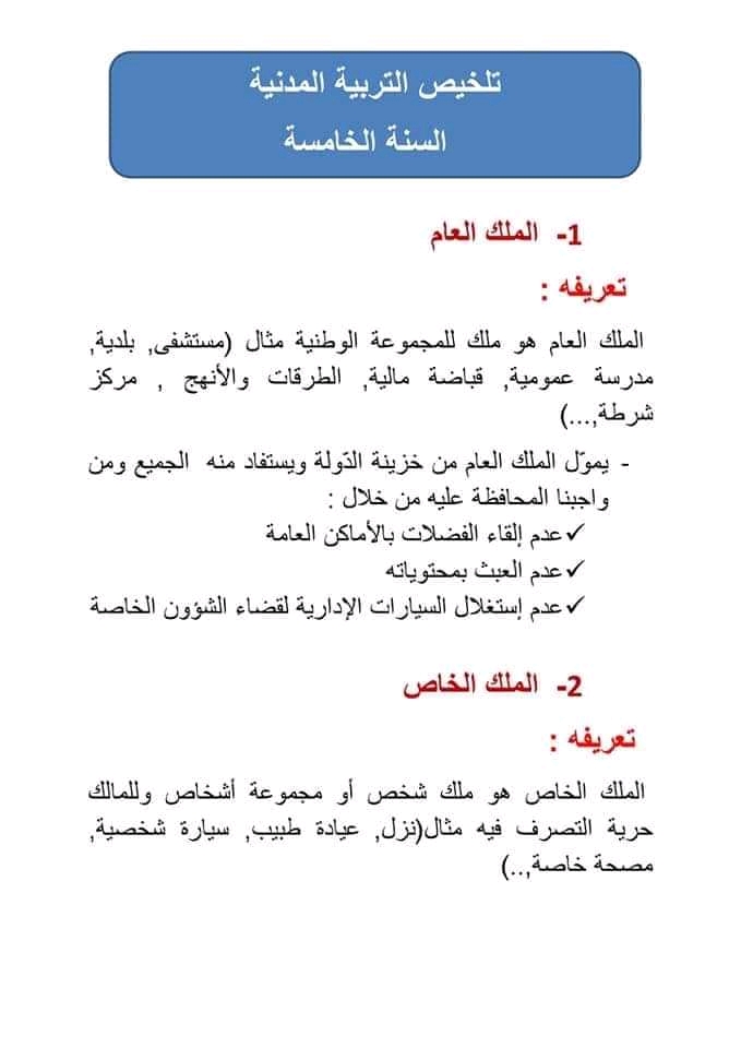 ملخصات تاريخ و جغرافيا و تربية مدنية