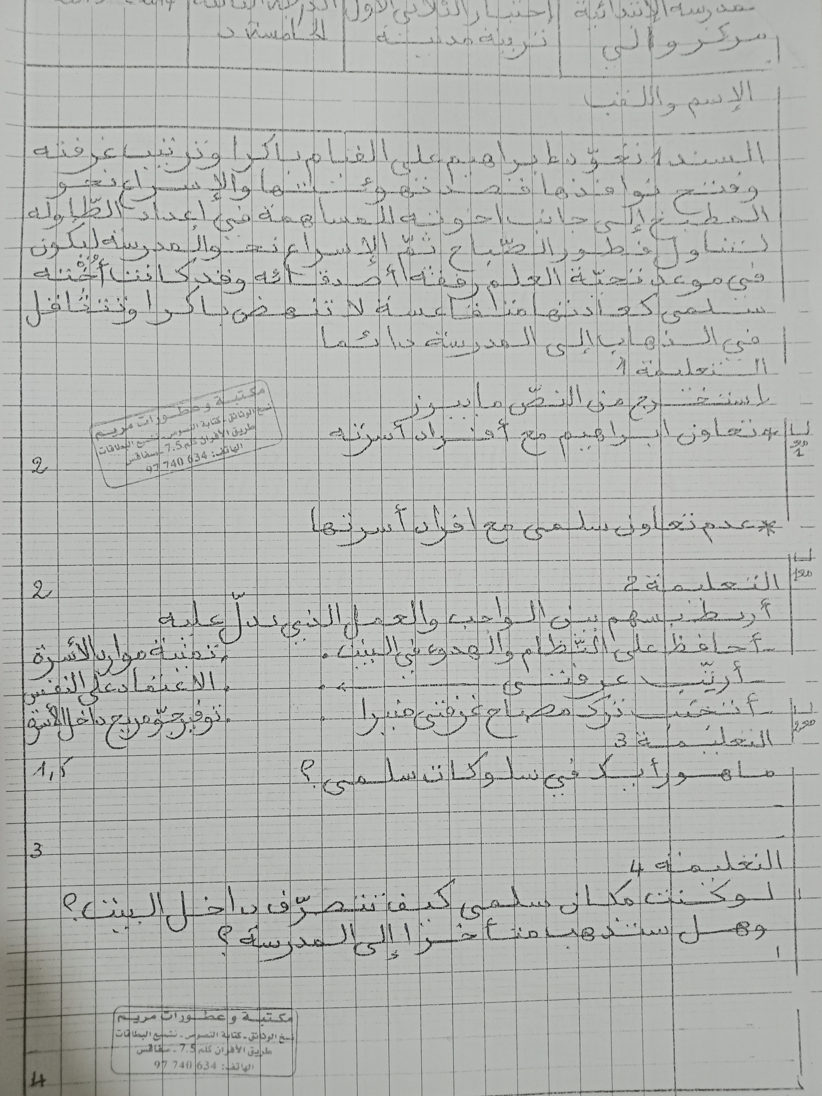 امتحانات تربية مدنية سنة خامسة