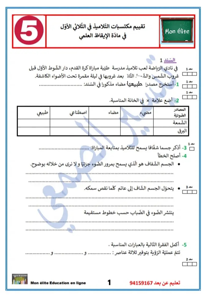 إيقاظ علمي الثلاثي الثالث مع الإصلاح سنة خامسة