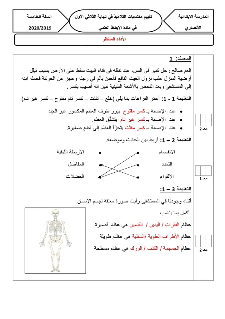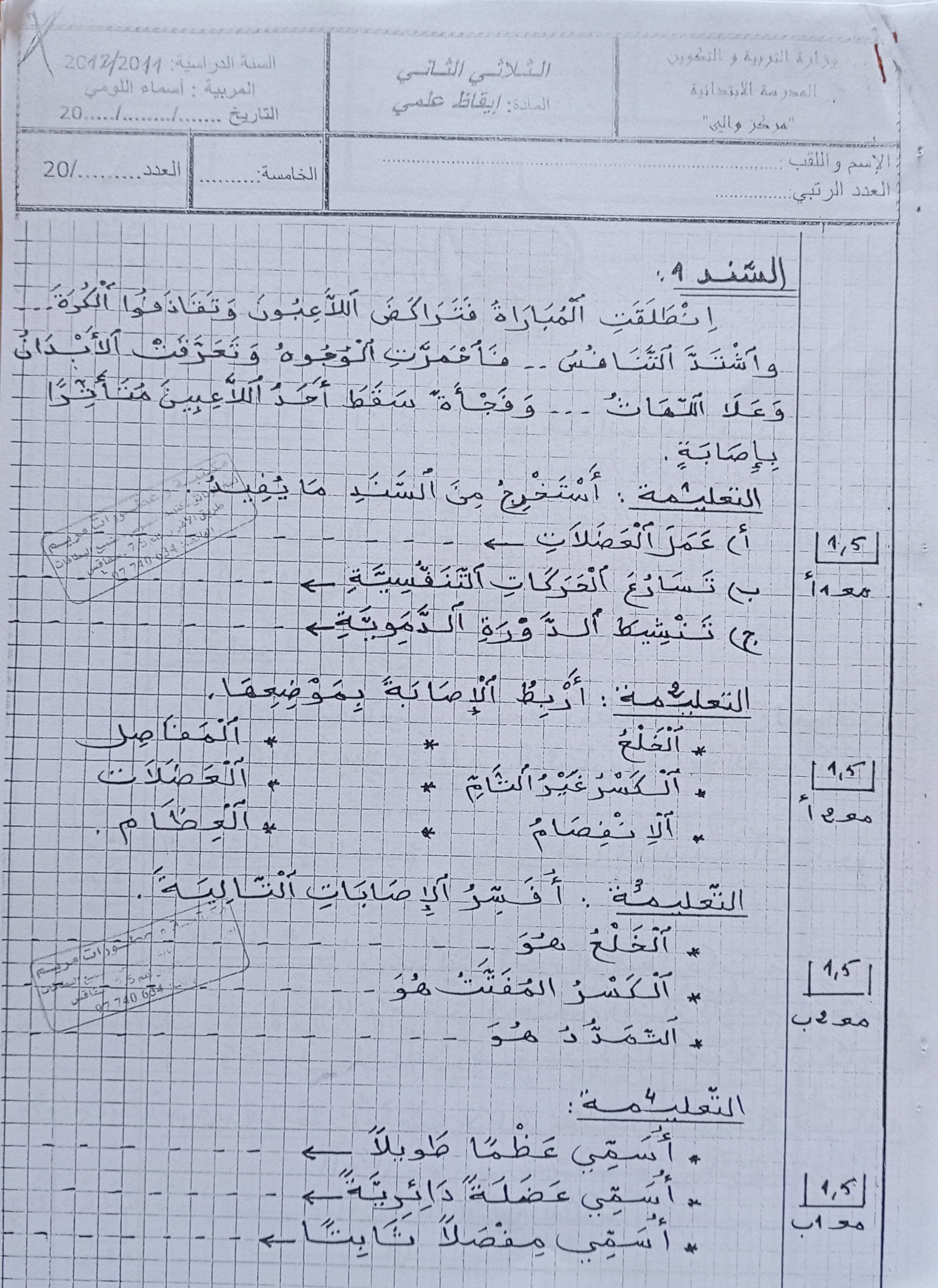 #تقييم مكتسبات التلاميذ في نهاية #الثلاثي 2 مع الاصلاح