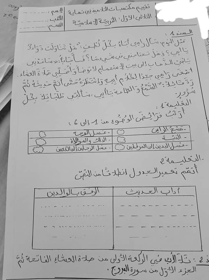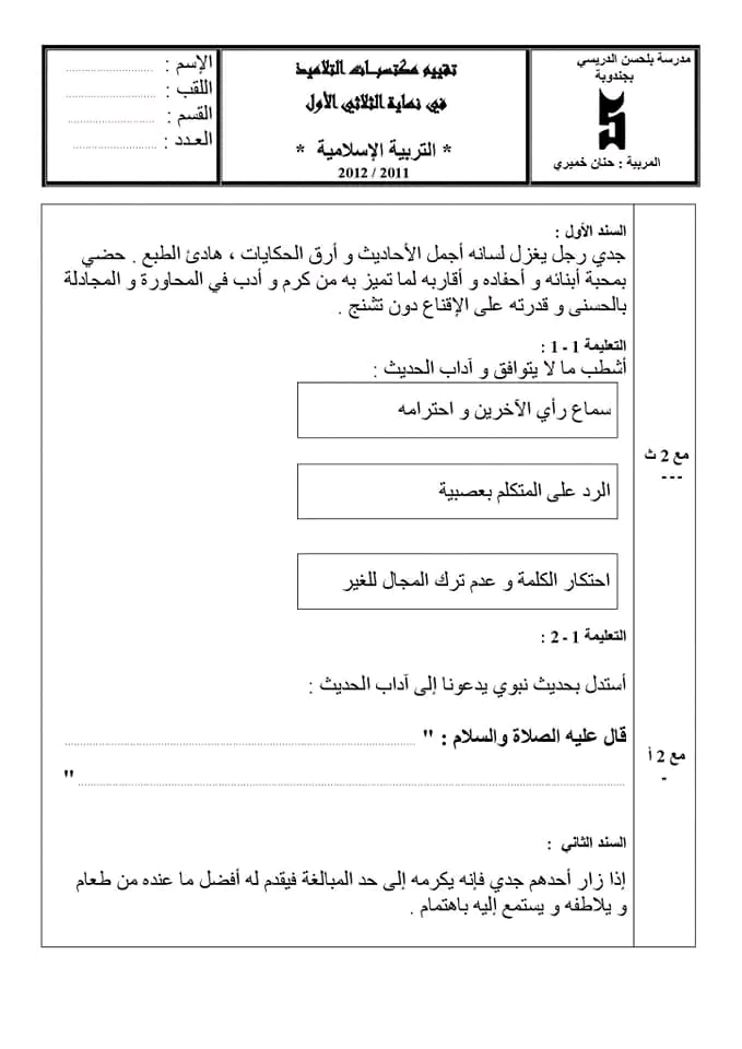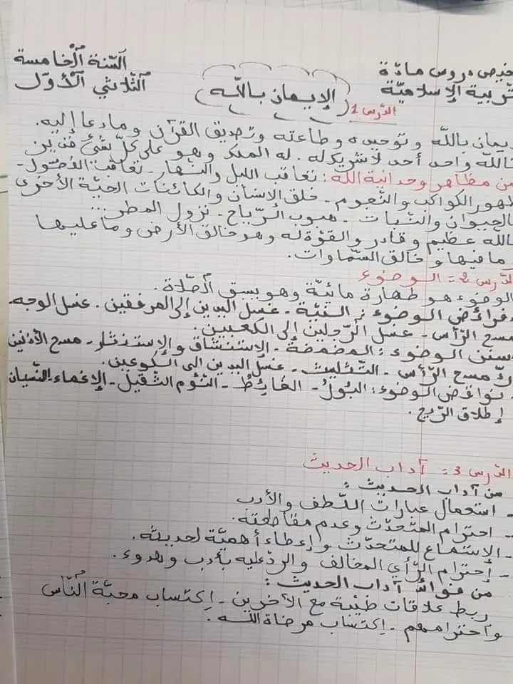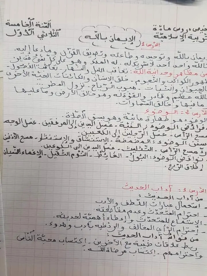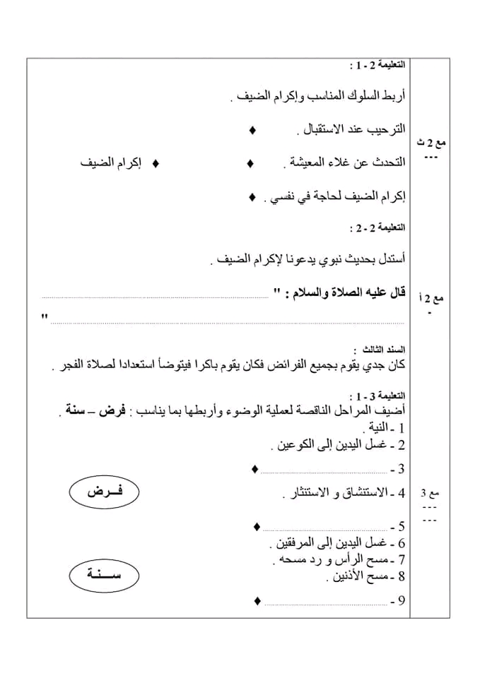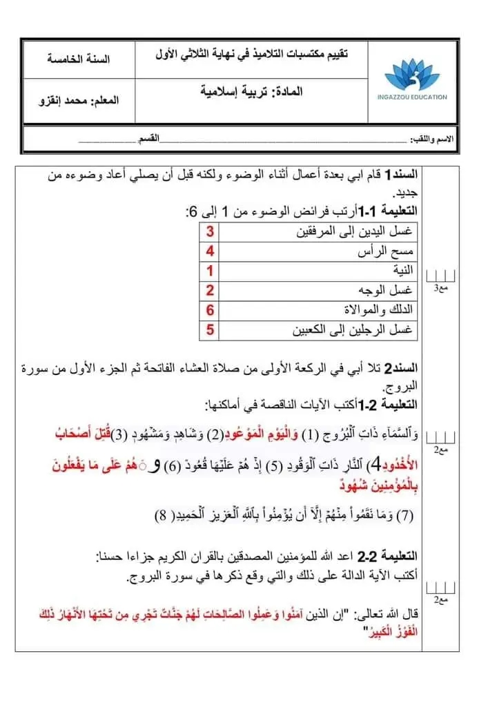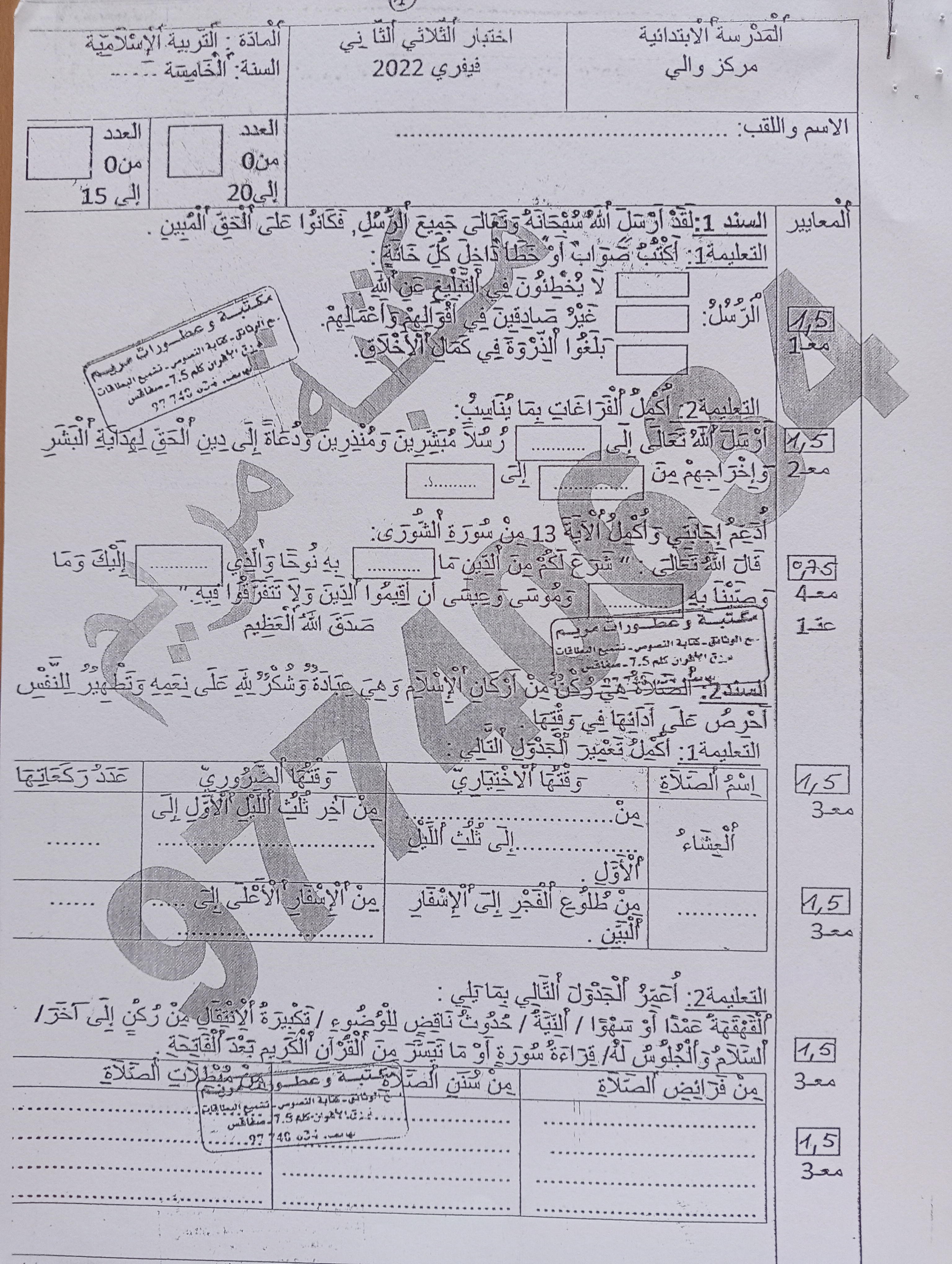 تربية اسلامية الثلاثي الثاني سنة خامسة