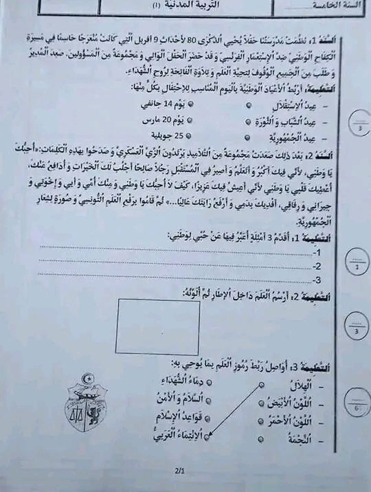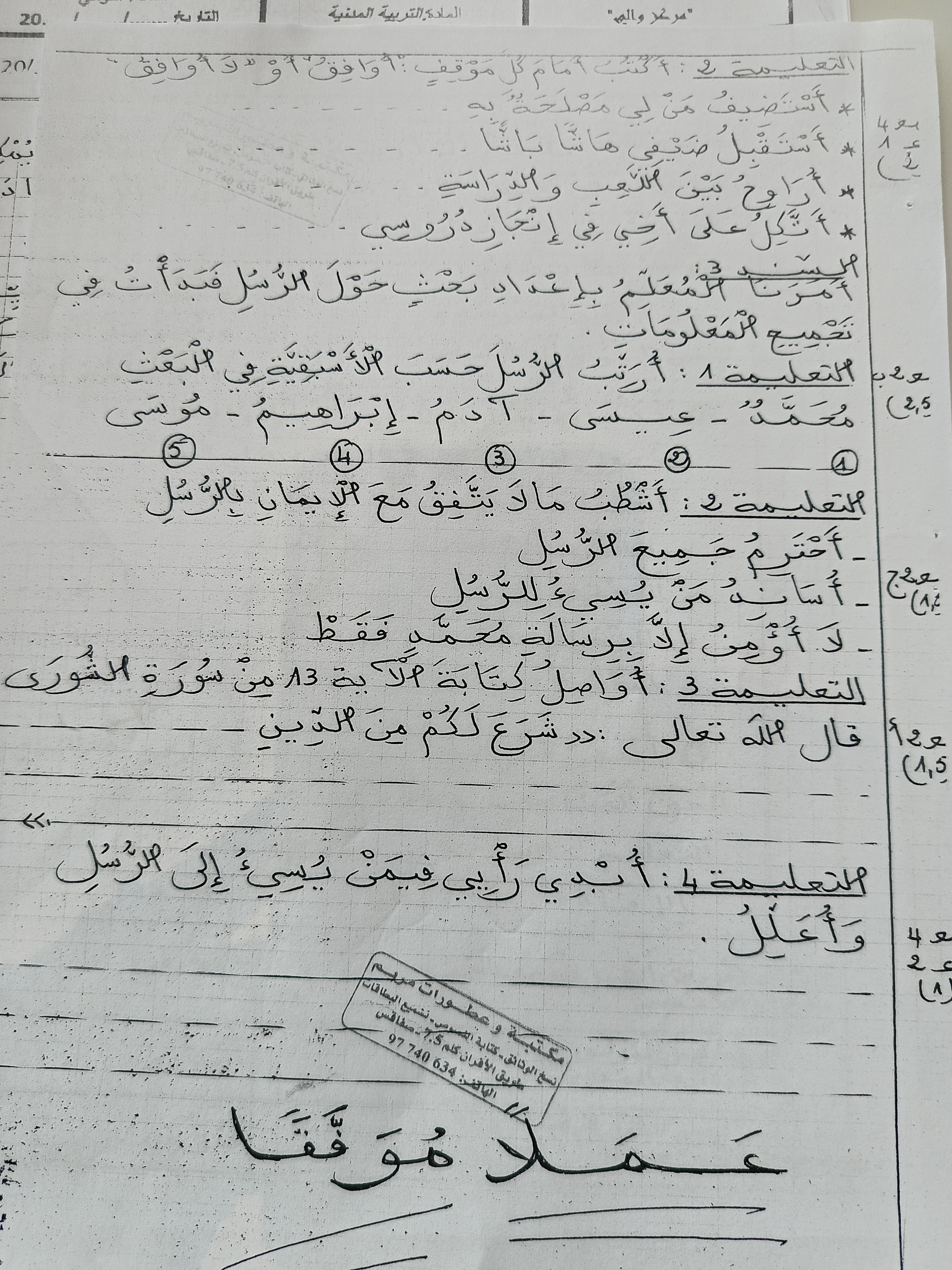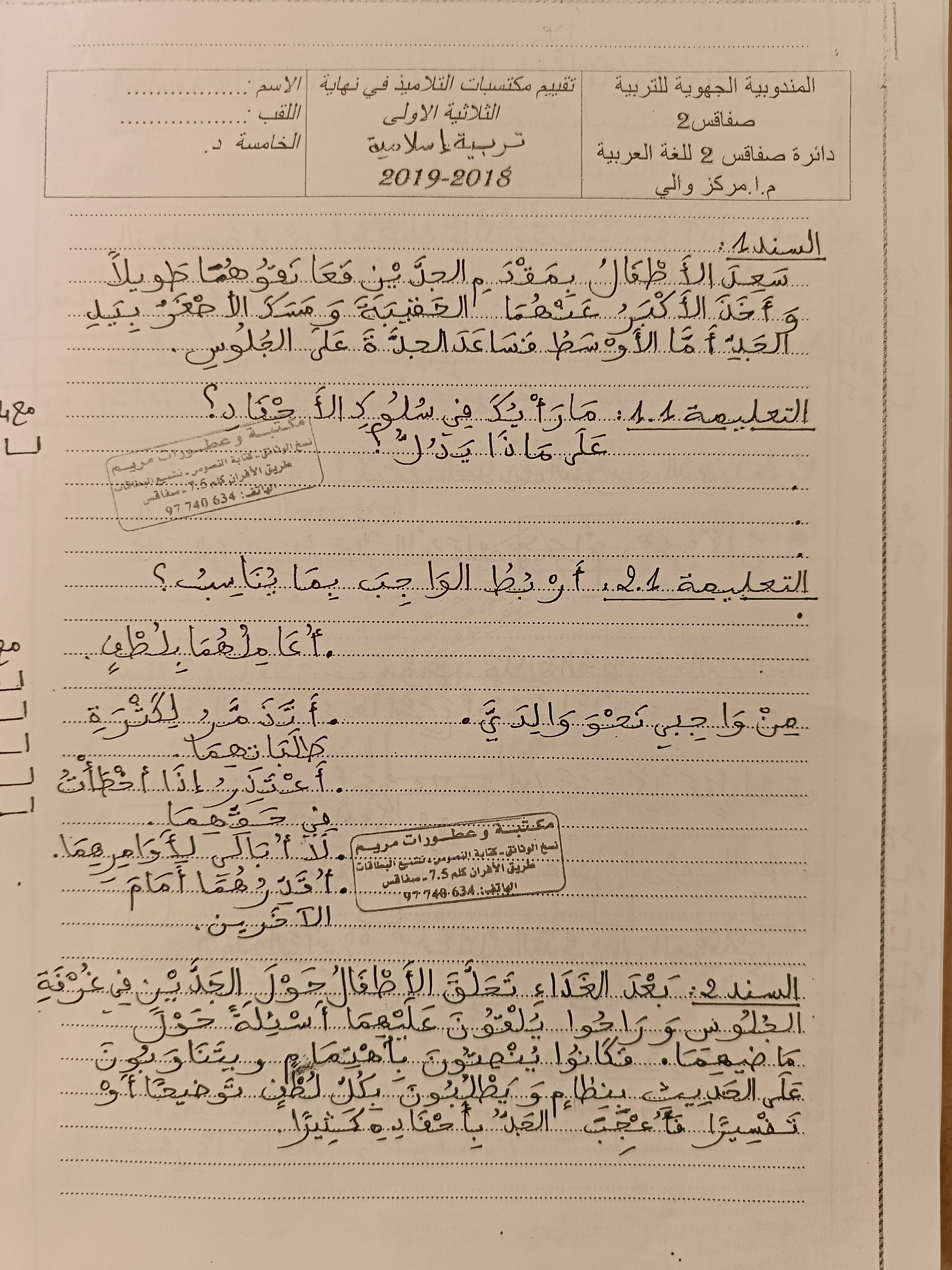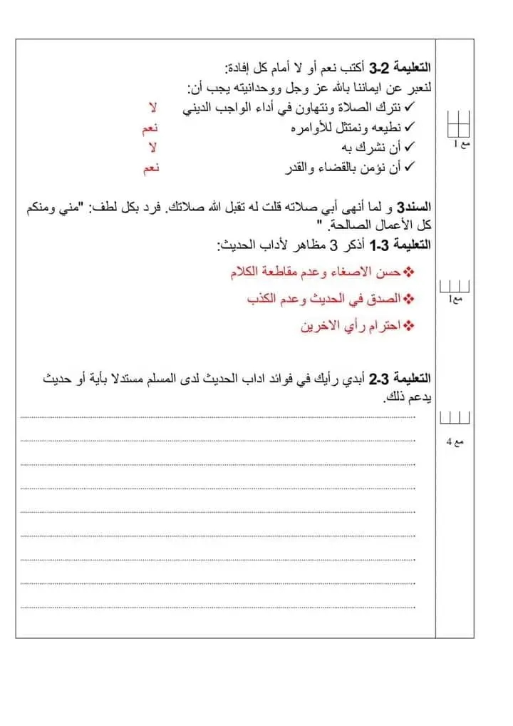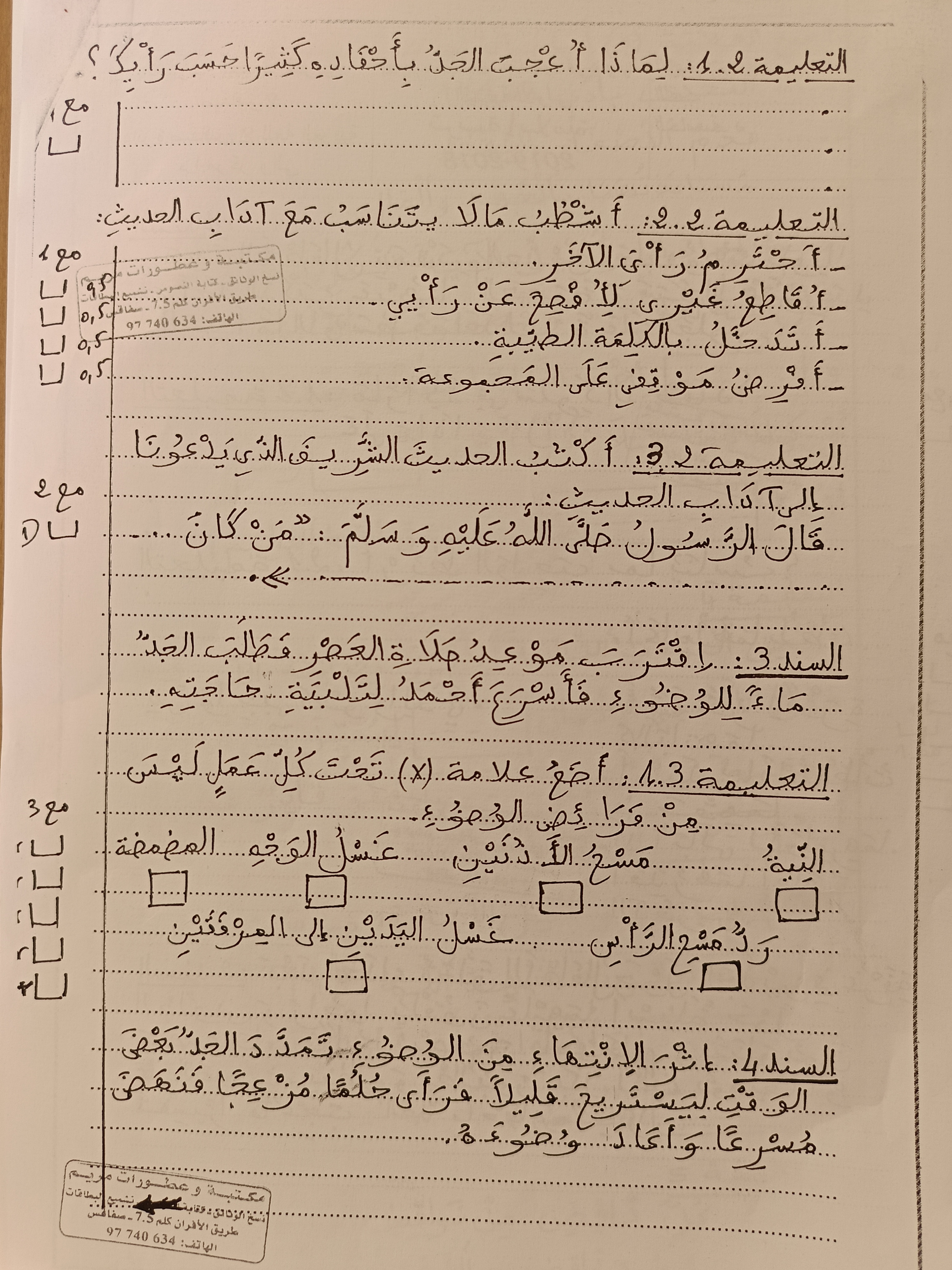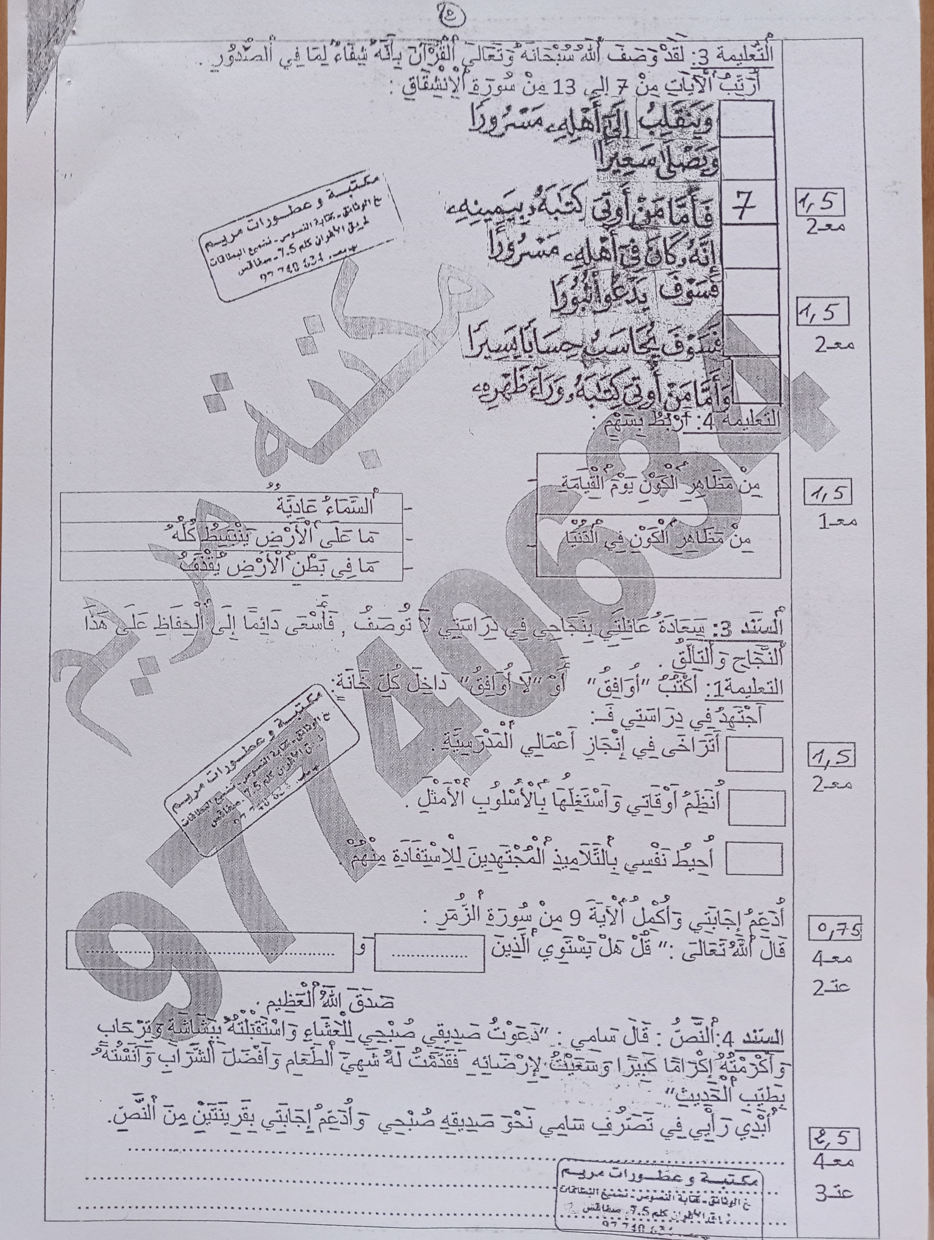تربية اسلامية الثلاثي الثاني سنة خامسة