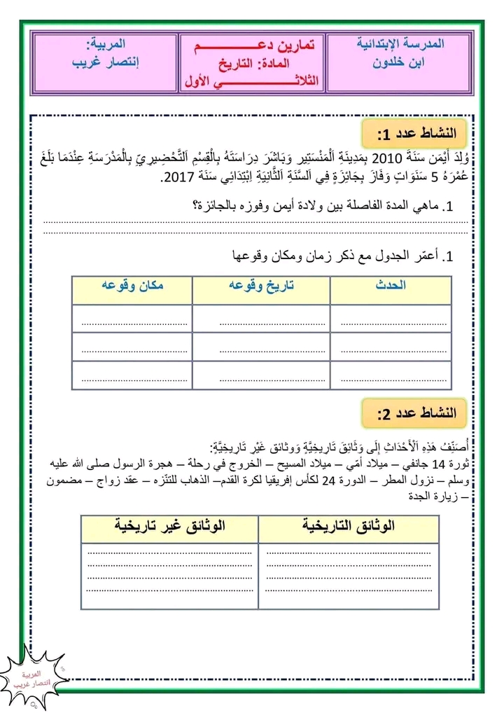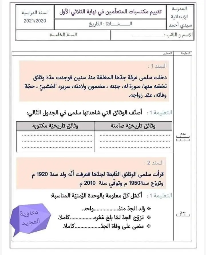 تاريخ سنة خامسة الثلاثي الأول 🥰🥰🥰🥰
