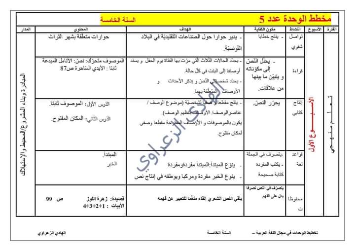 تقييم قراءة الوحدة الاولى سنة 5