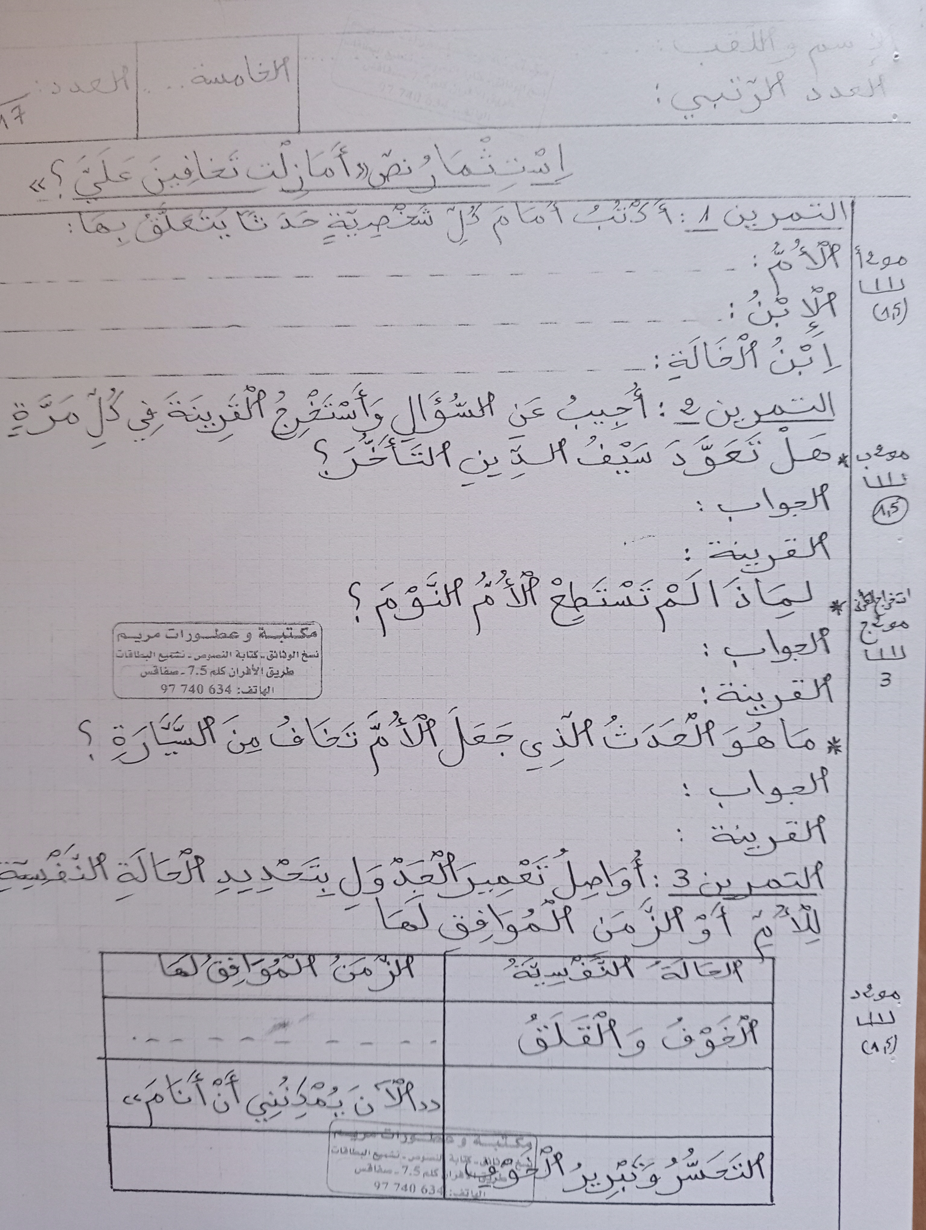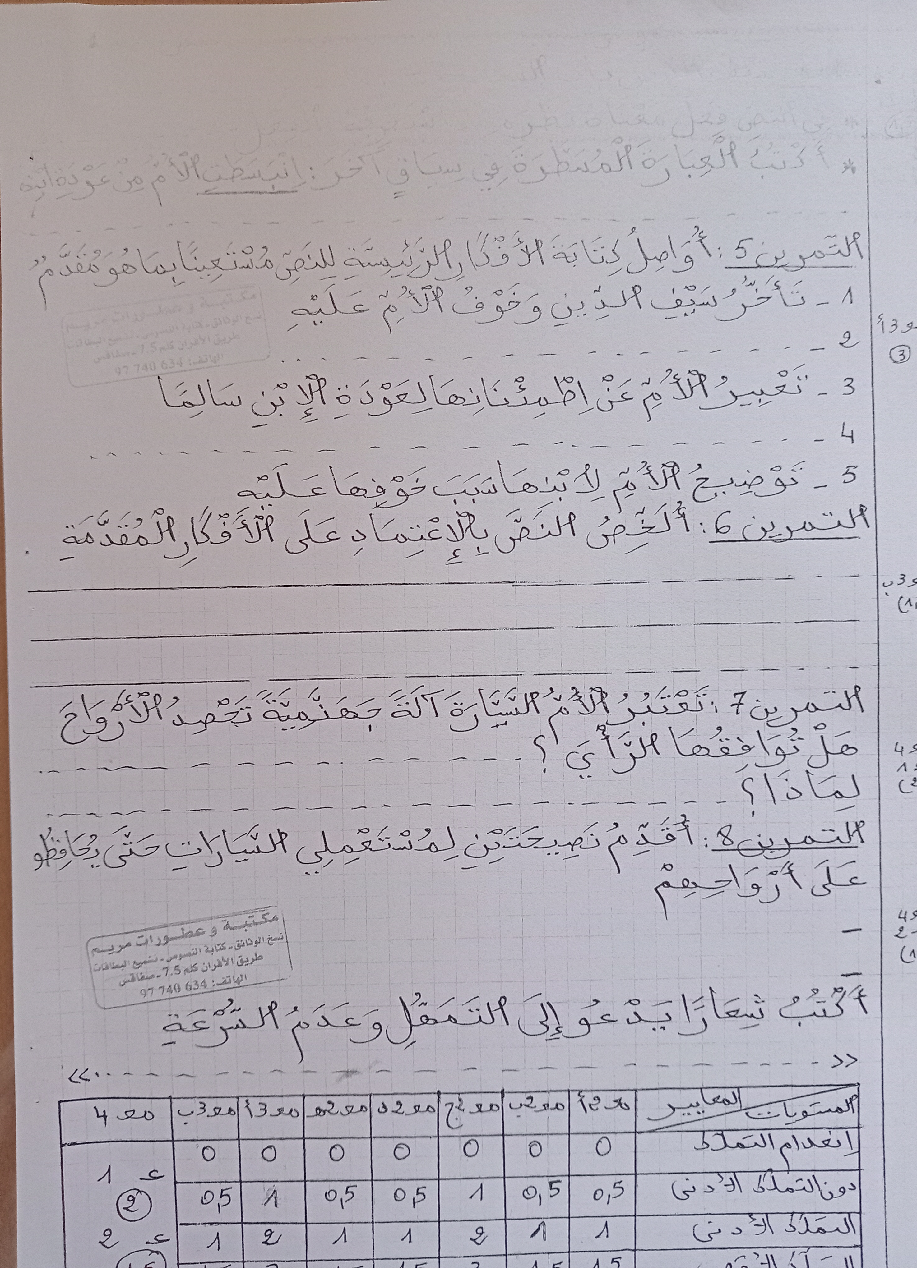 تقاييم قراءة وفهم سنة خامسة الثلاثي الثاني