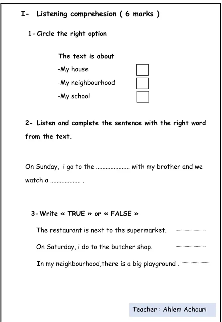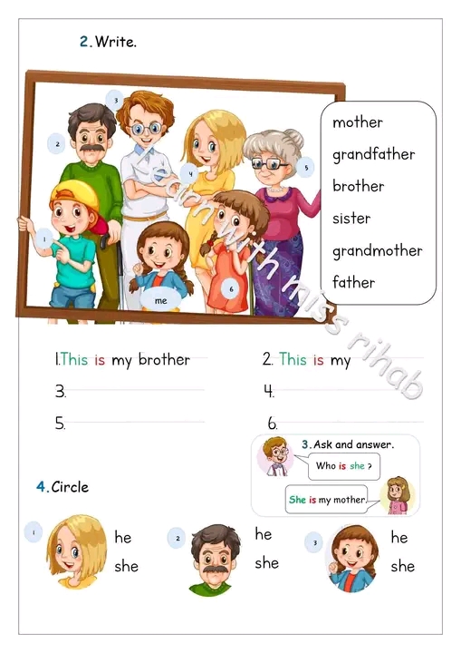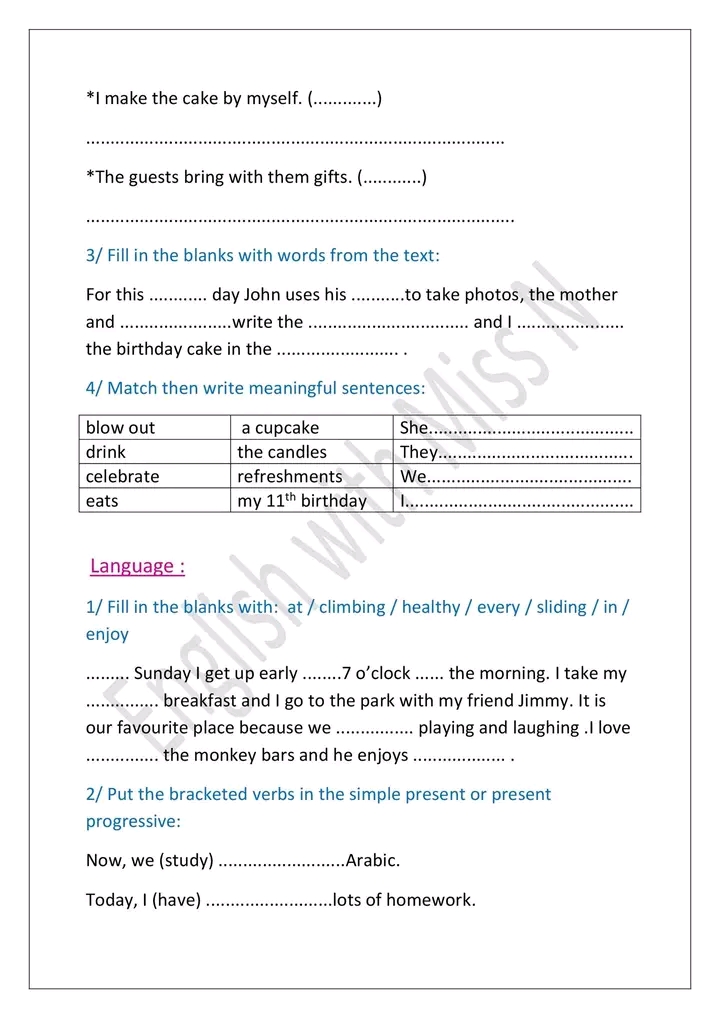 Complete by : my-your-our-their-his-her