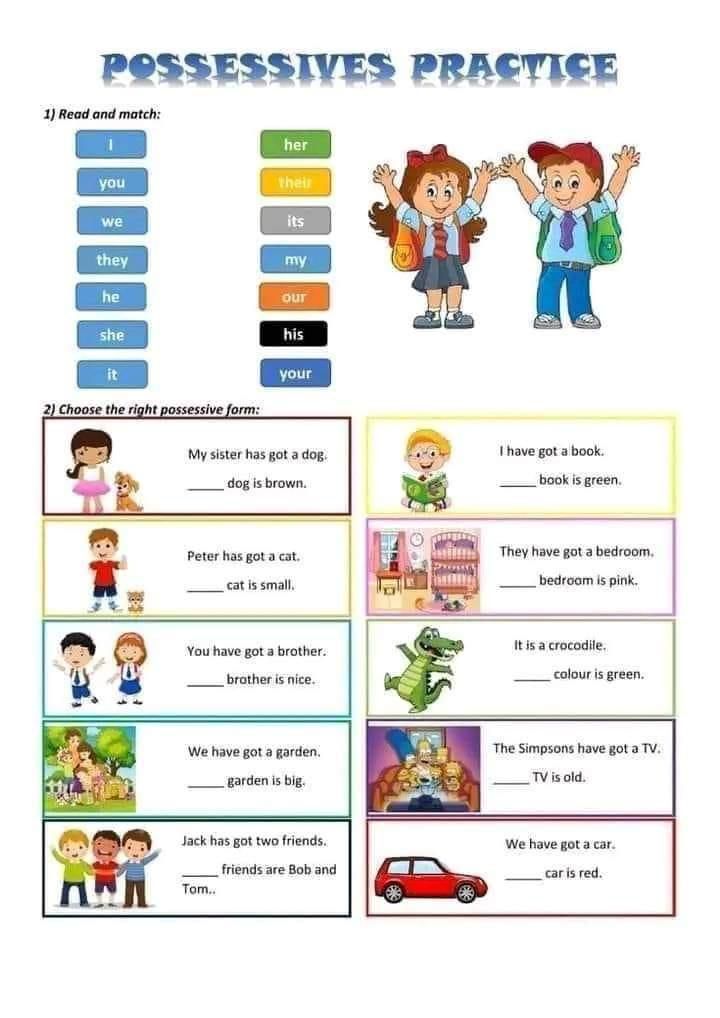 Exercice de complétion avec les pronoms possessifs en anglais