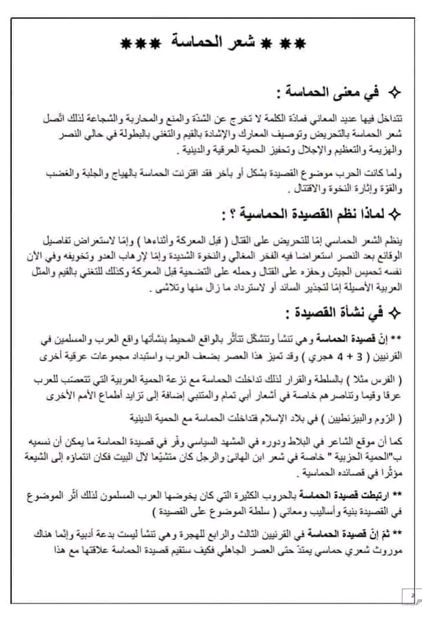 ✴️تلخيص ممتاز ةشامل لمحور-الحماسة-