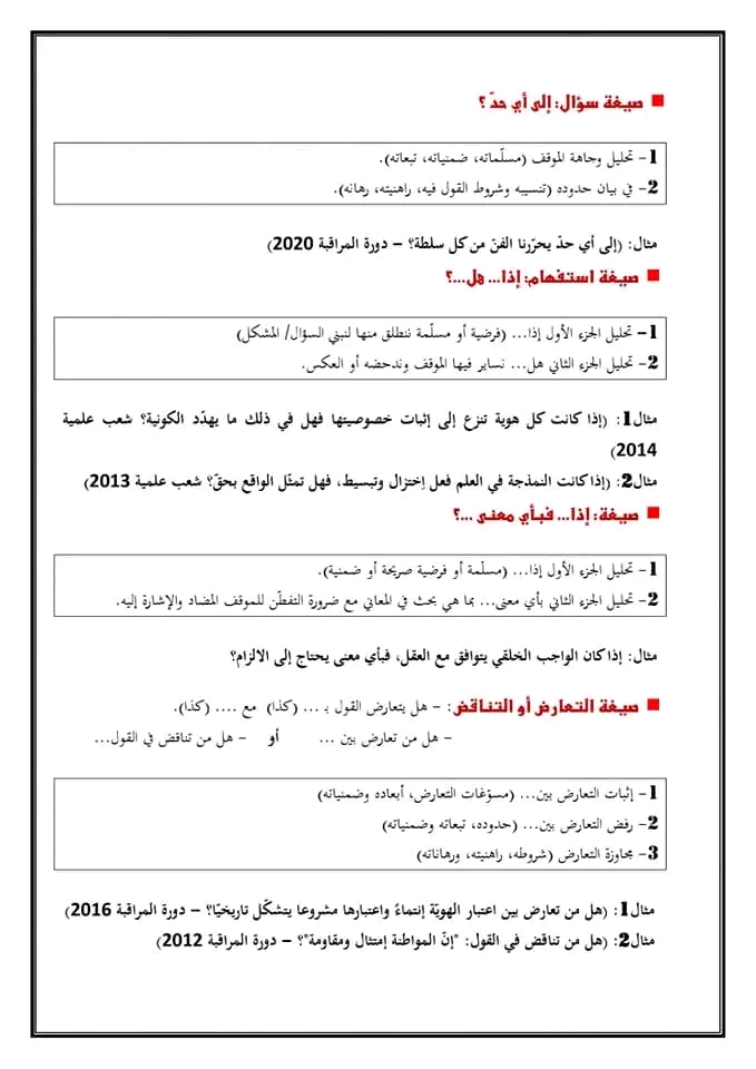 4_ صياغة الإشكالية ( صياغة إمية مثلا دقيقة وشاملة/ تتضمن السؤال المركزي ثم هل/ الأطروحة المستبعدة/ أم/ الأطروحة المثبتة + سؤال نقدي ينصب على الأطروحة المثبتة)