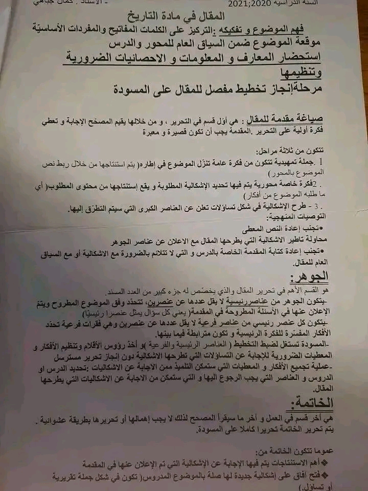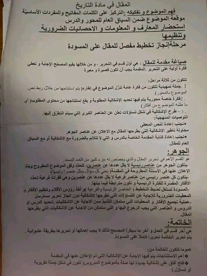 # ملاحظة: هذه مسودة وبإمكان التلميذ أن يشطب ويصحح ويعيد إختيار تمهيد آخر حتى يحصل على تمهيد وجيه ٠لكن دون تضييع للوقت في إنجاز المقدمة