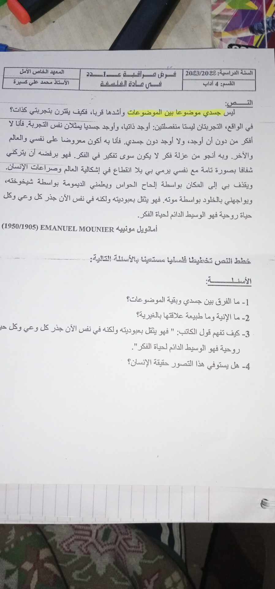 فرض مراقبة عدد 1 فلسفة