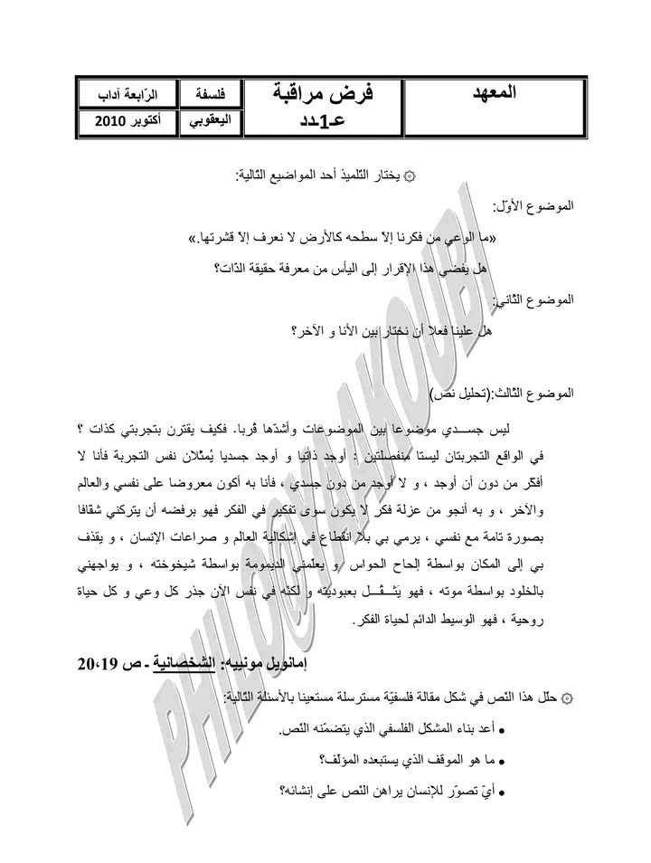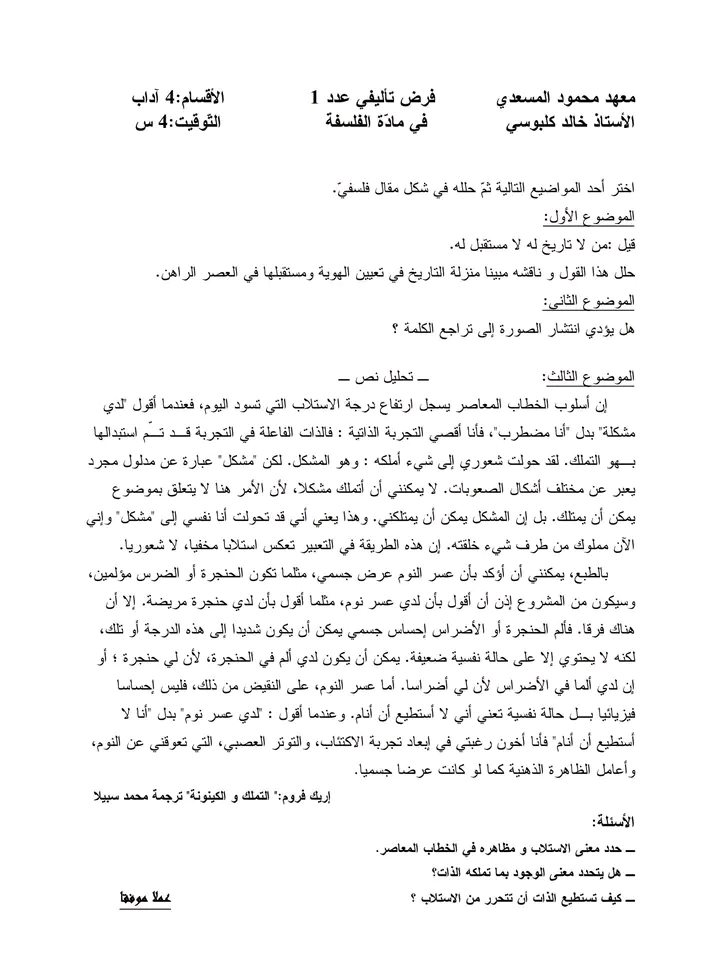 📄 Deux Devoirs Synthèses N°1 Sans Correction -فلسفة-