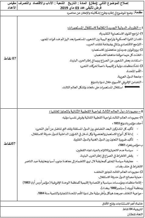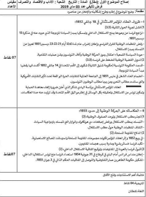 #اصلاح الفرض الجهوي في #التاريخ الخاص بولاية #تطاوين :باكالوريا تجريبية 2019