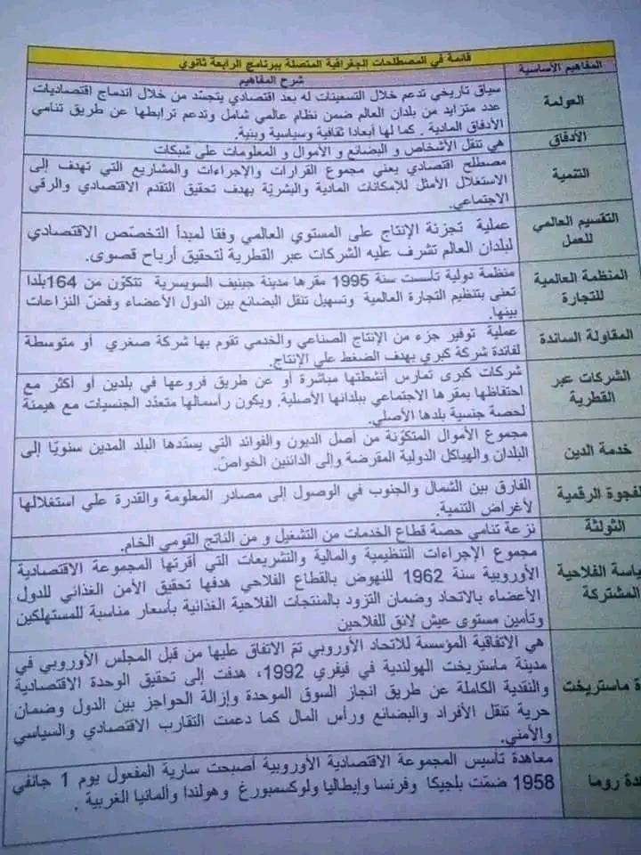 بعض المصطلحات في مادة الجغرافيا