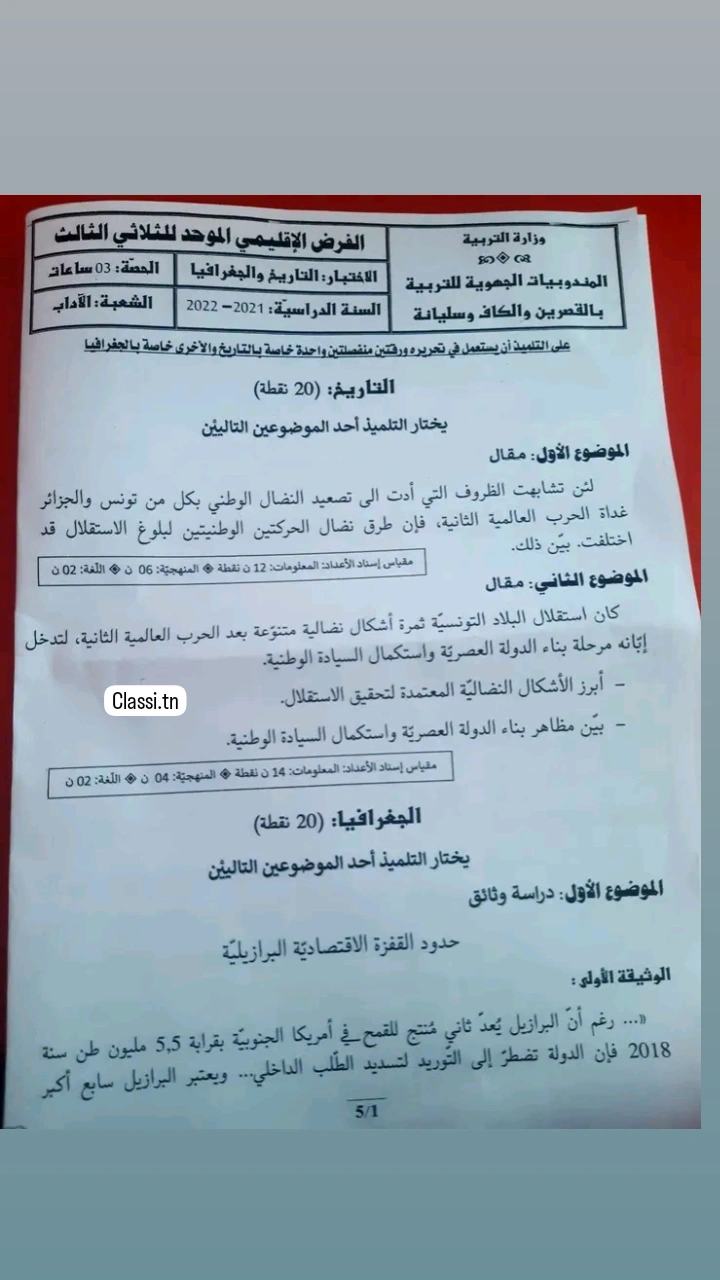 مجموعة من فروض التاريخ و الجغرافيا باكالوريا آداب