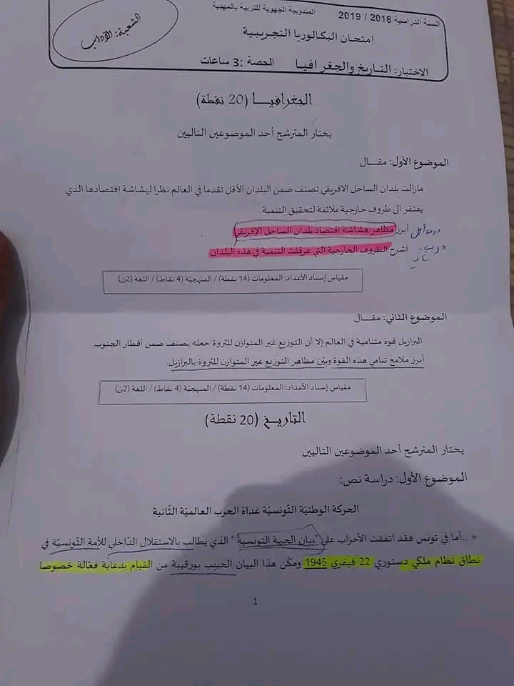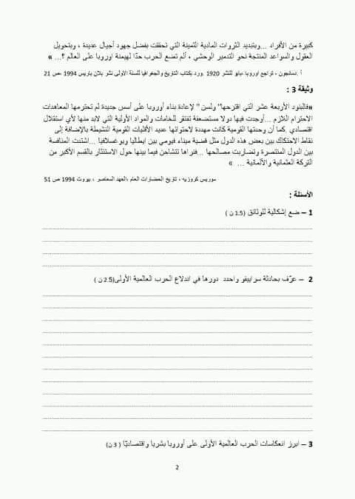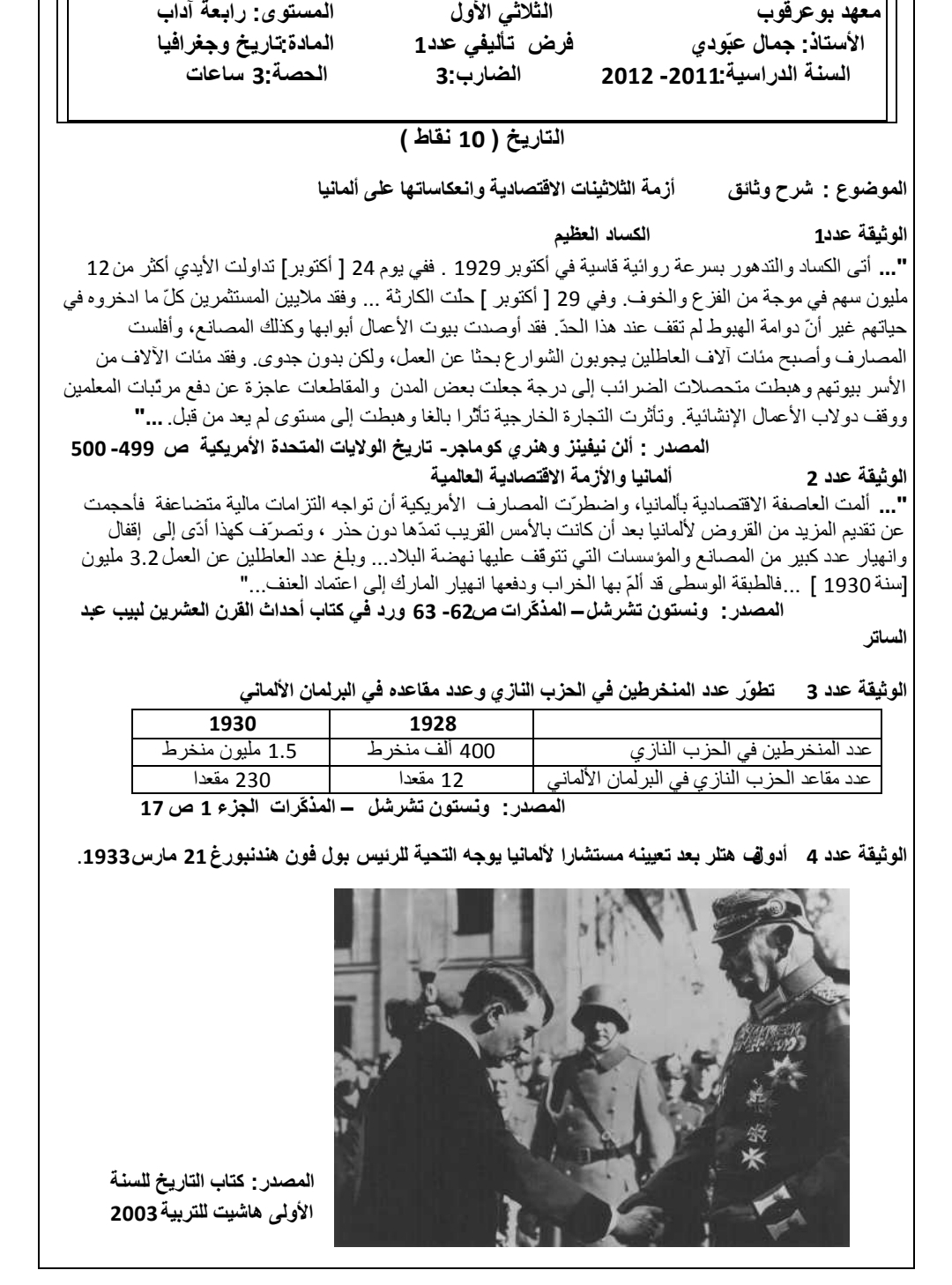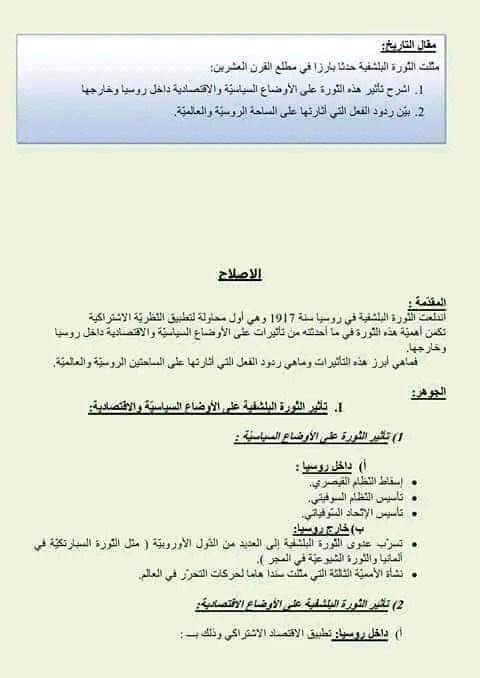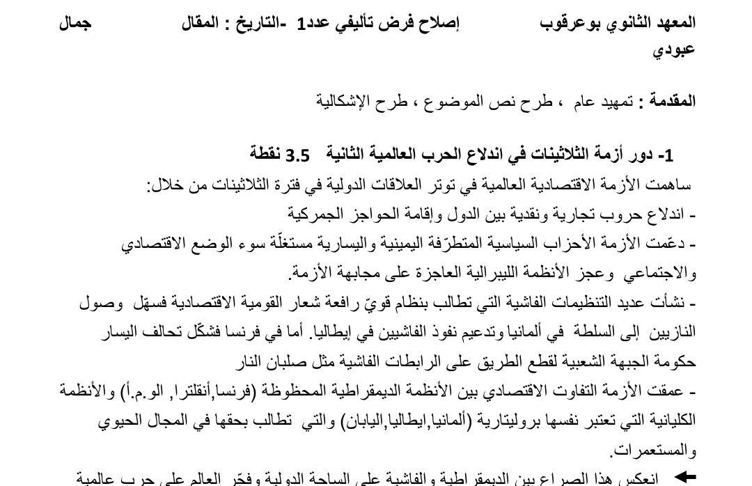 فرض تأليفي عدد 1 تاريخ و جغرافيا بالاصلاح