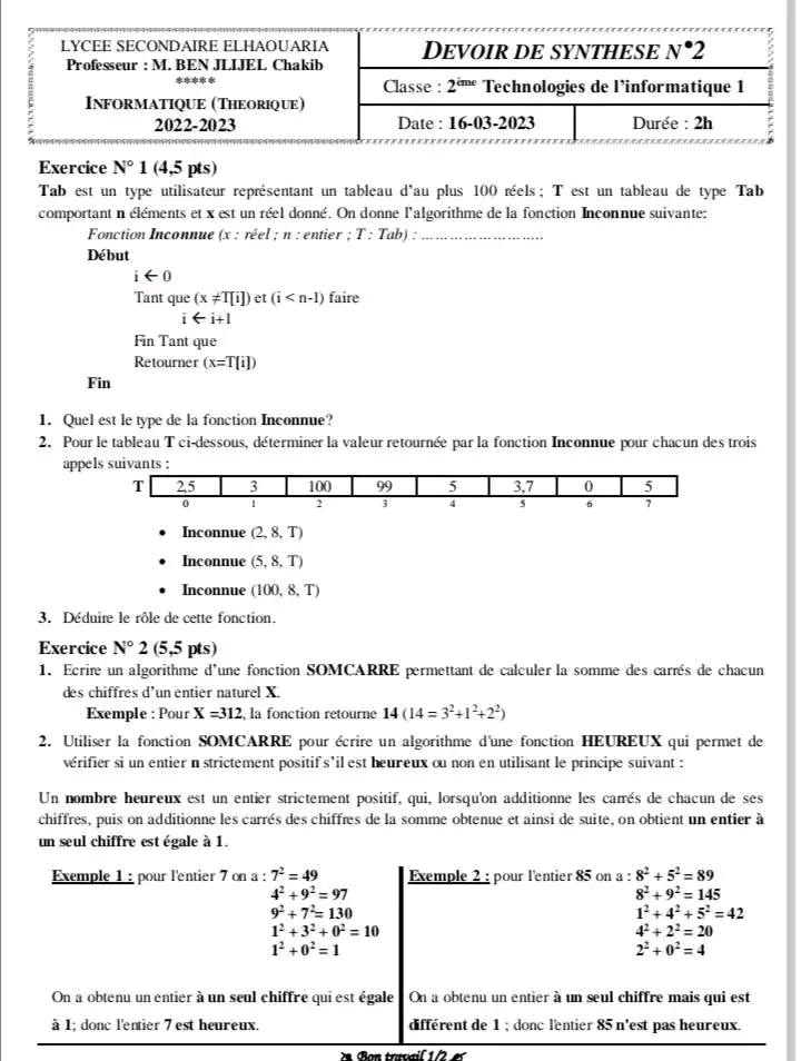 Devoirs de synthèse Informatique trimestre 2 ( 2 )