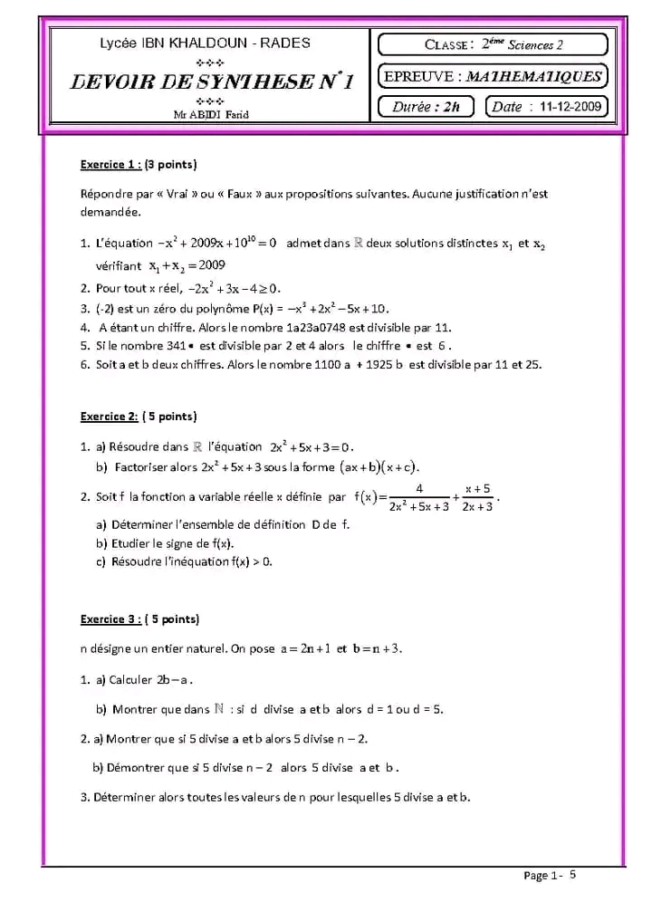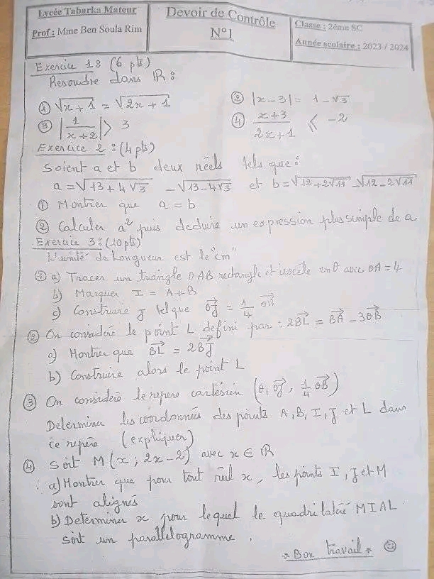 Série N°1 : Notion de Polynôme