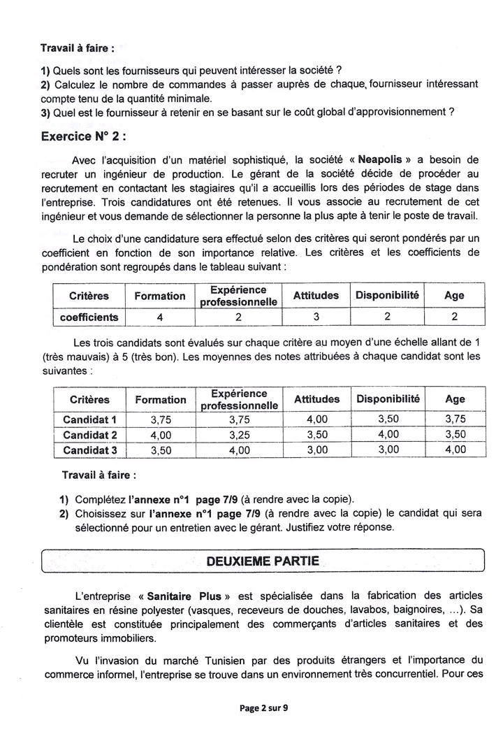 إمتحان التصرف - شعبة الإقتصاد والتصرف - الدورة الرئيسية 2025 ،