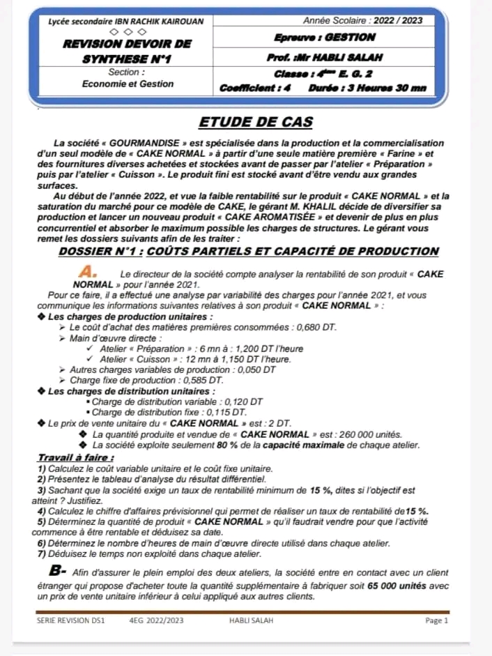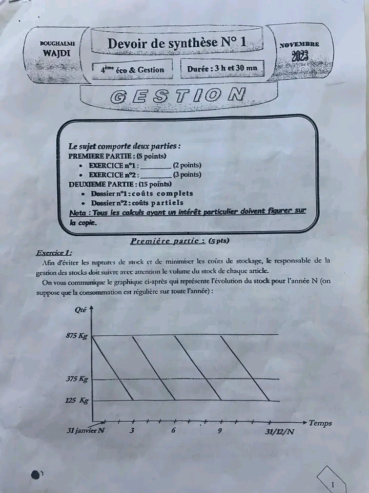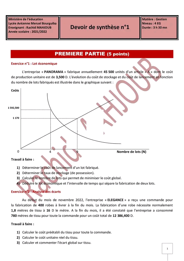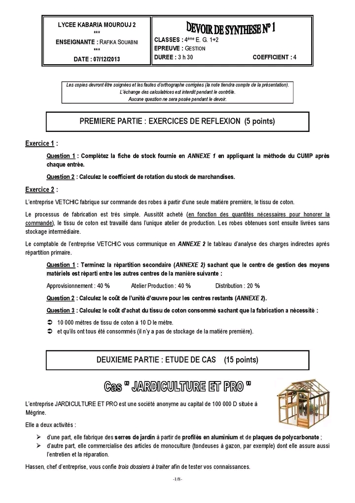 🌺 Devoir de avec synthèse N°1 avec gestion_avec_correction