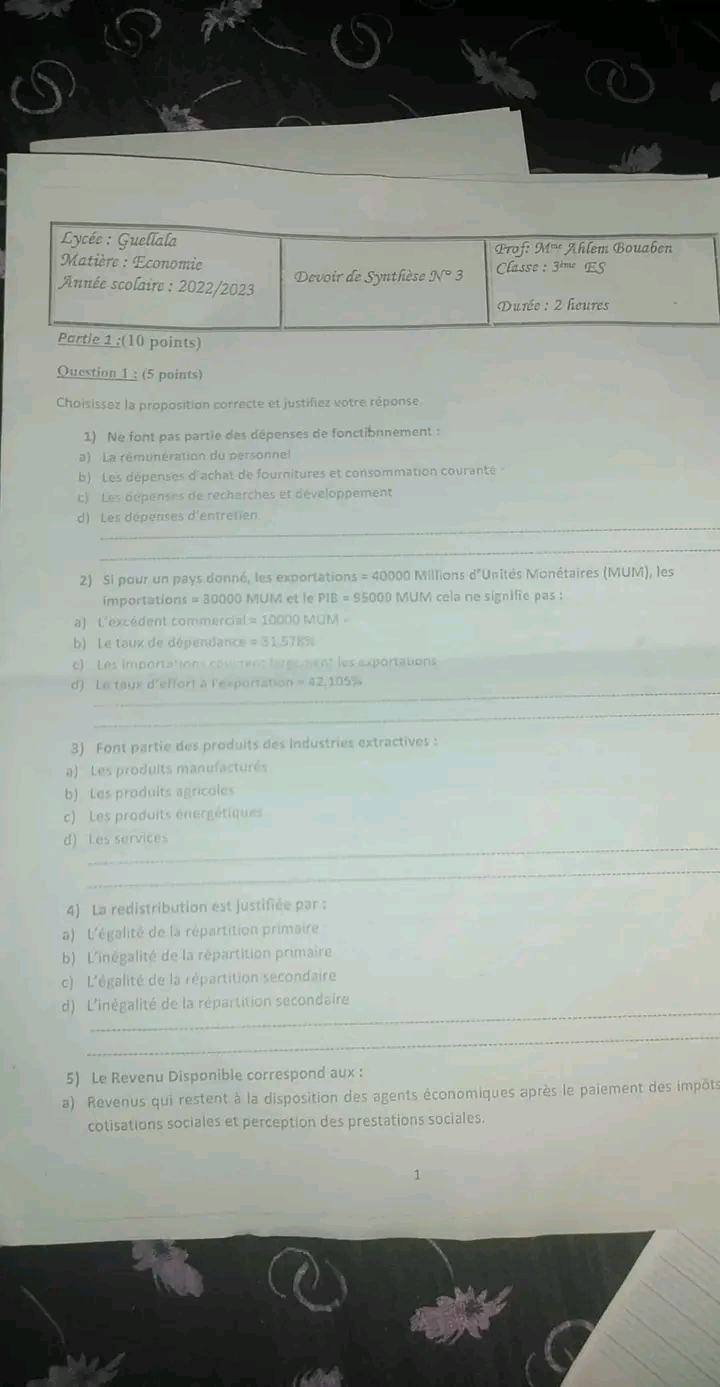 Devoir N°3 avec correction 🌀BAC ECO 🫶🏼
