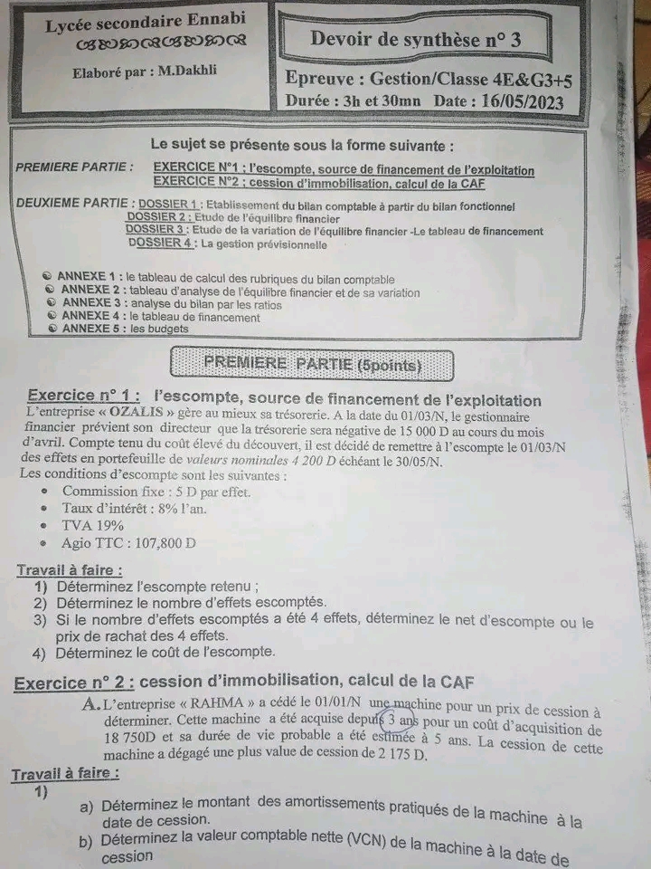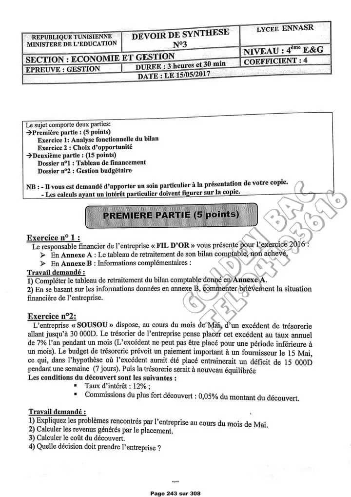 Correction Devoir de synthèse n°3 (BAC BLANC)
