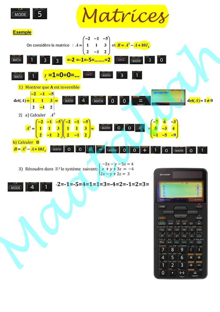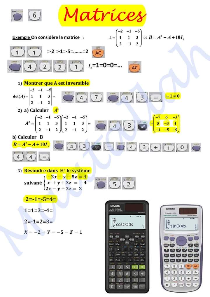 Matrices : bac Eco- Calculatrice - Casio - FX 991 ES Plus et Sharp EL - W 506T