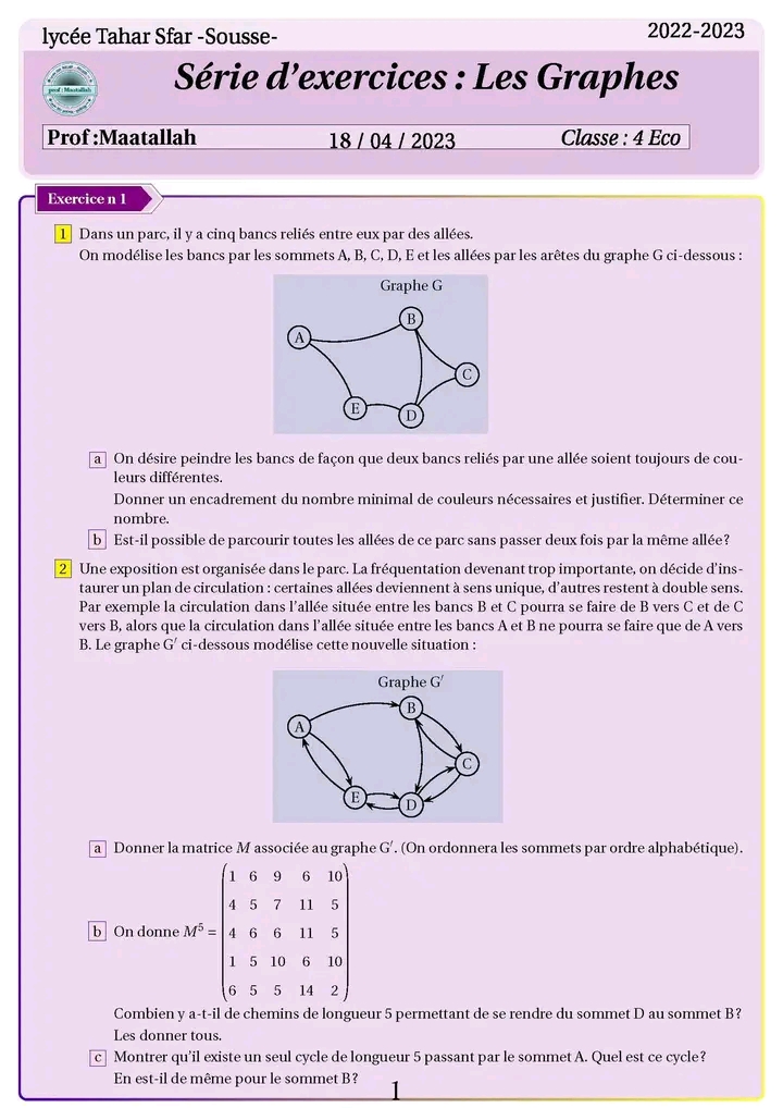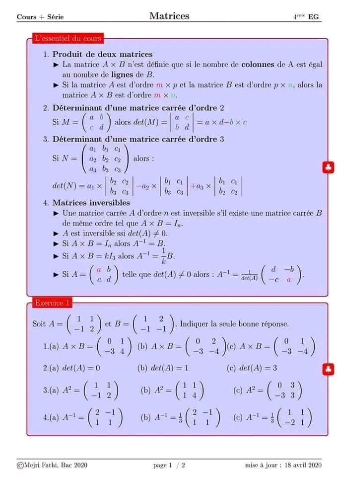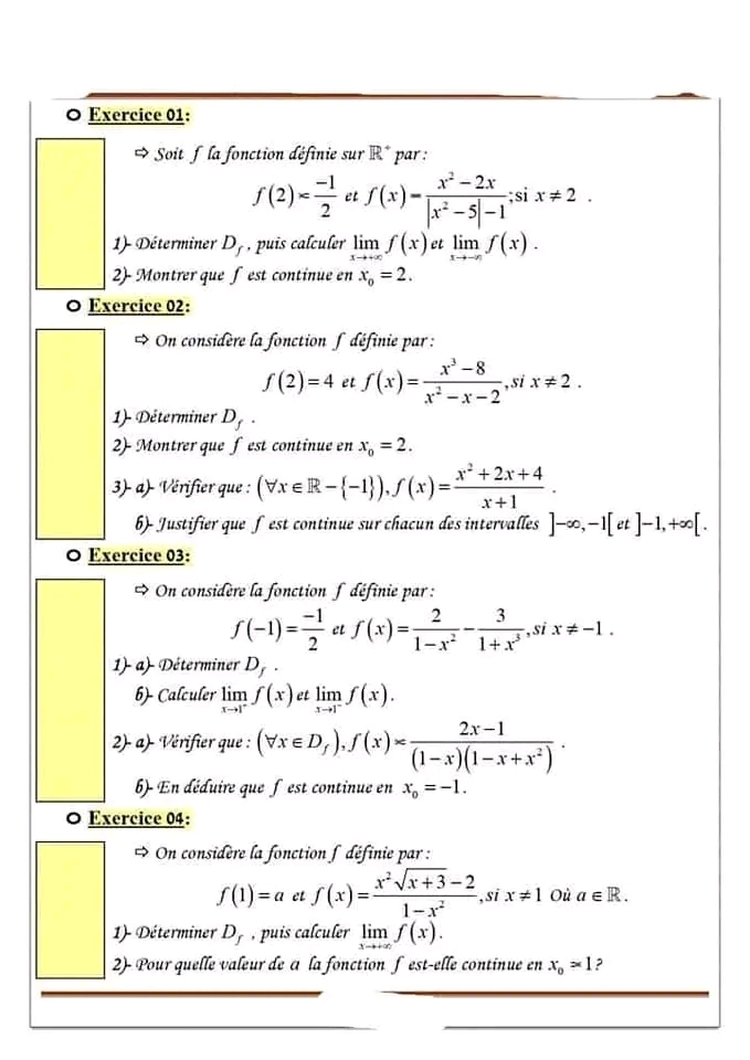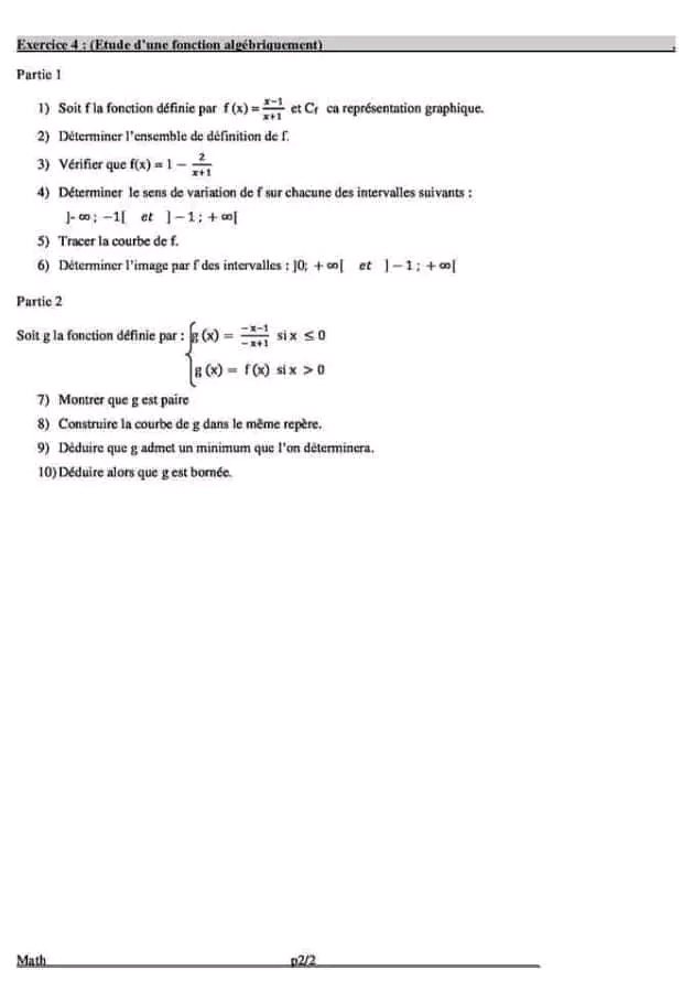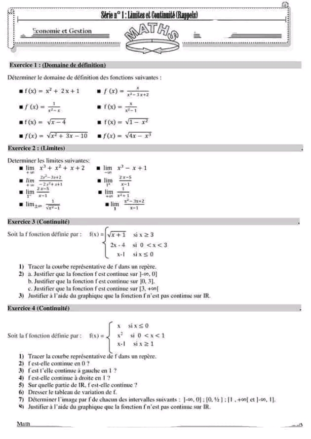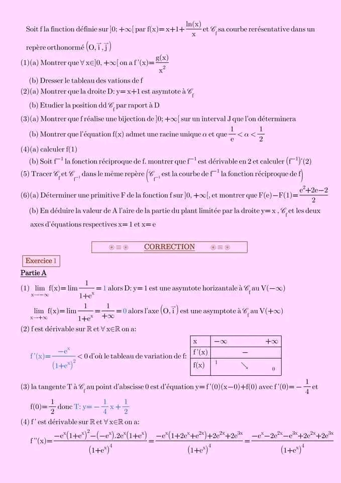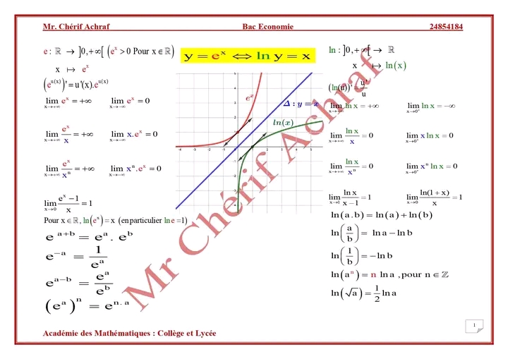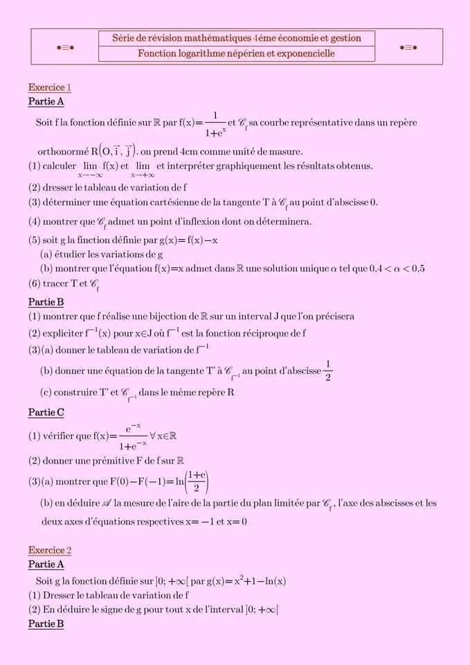Série de révision fonction logarithme et exponentielle pour 4ème économie et gestion + corrigé