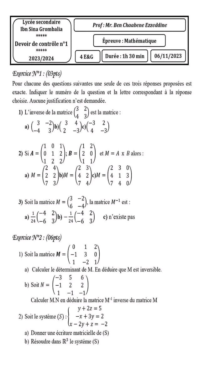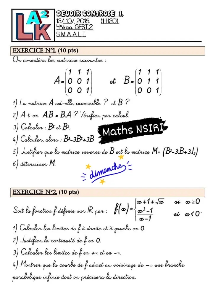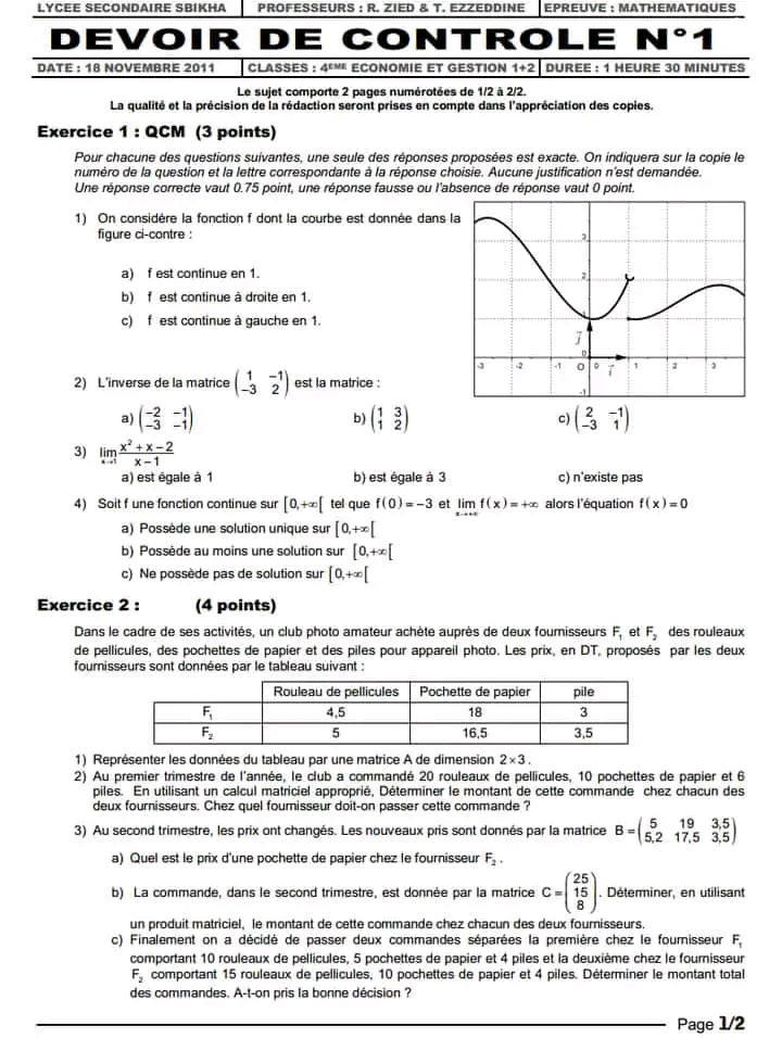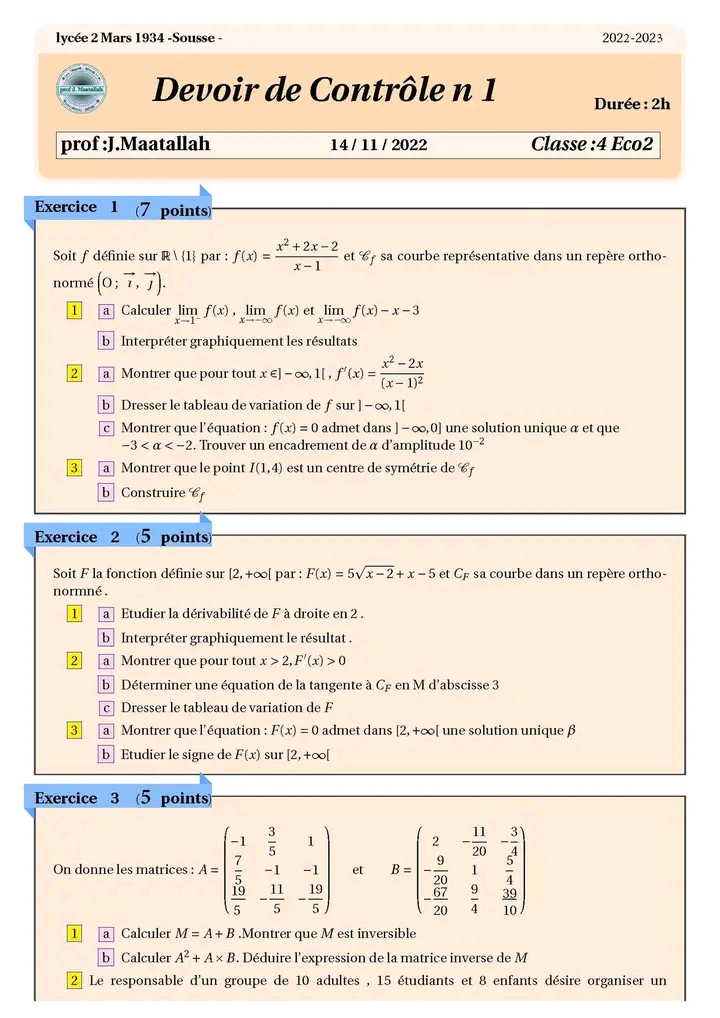 Correction devoir de contrôle 2 ❤️ MATH