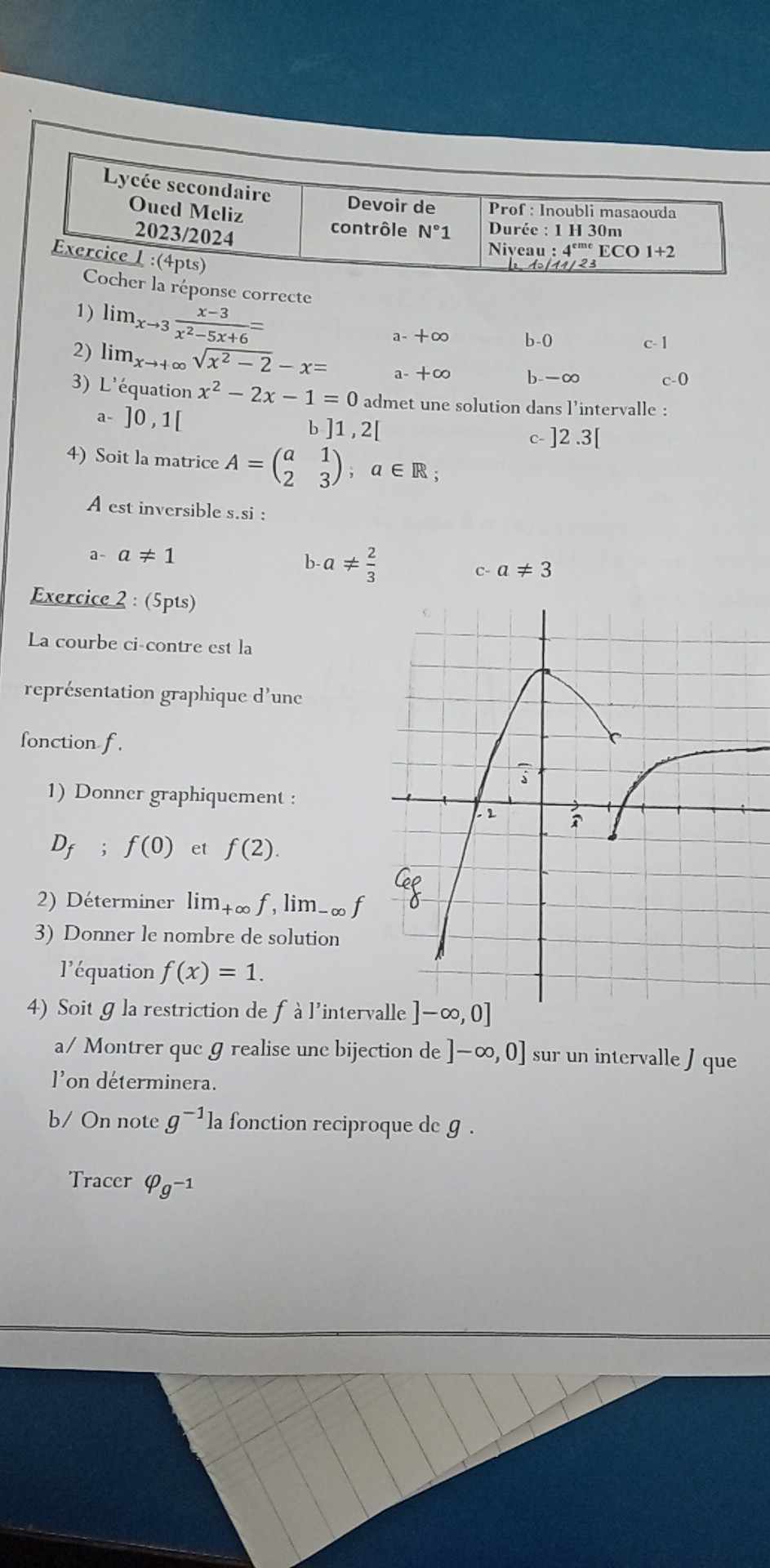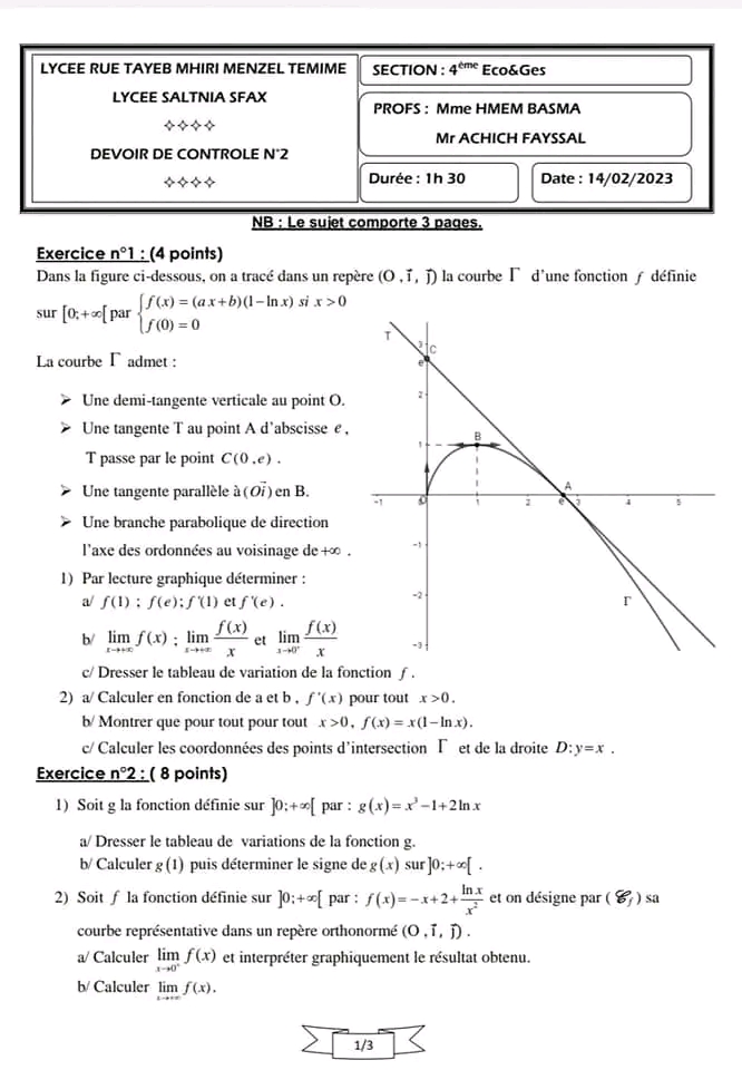 Devoir controle n• 2 Bac Eco