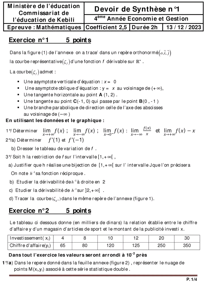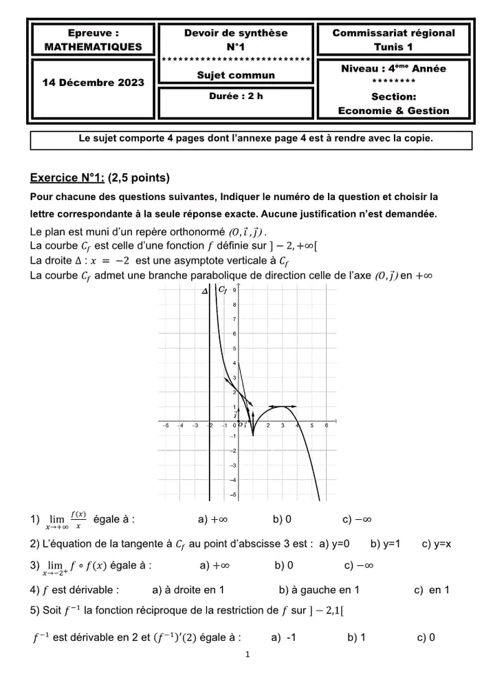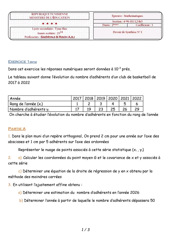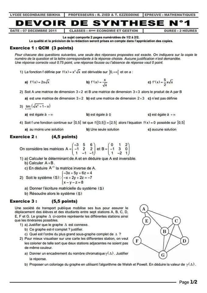 Devoir de synthèse N°1 & corrigé 🛎🎯