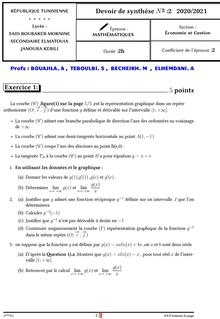 Examen : Devoir de synthèse n°2