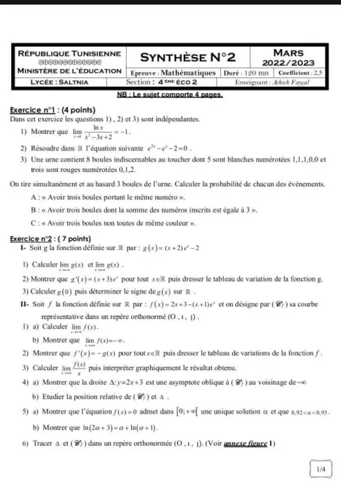 Epreuve : Mathematiques