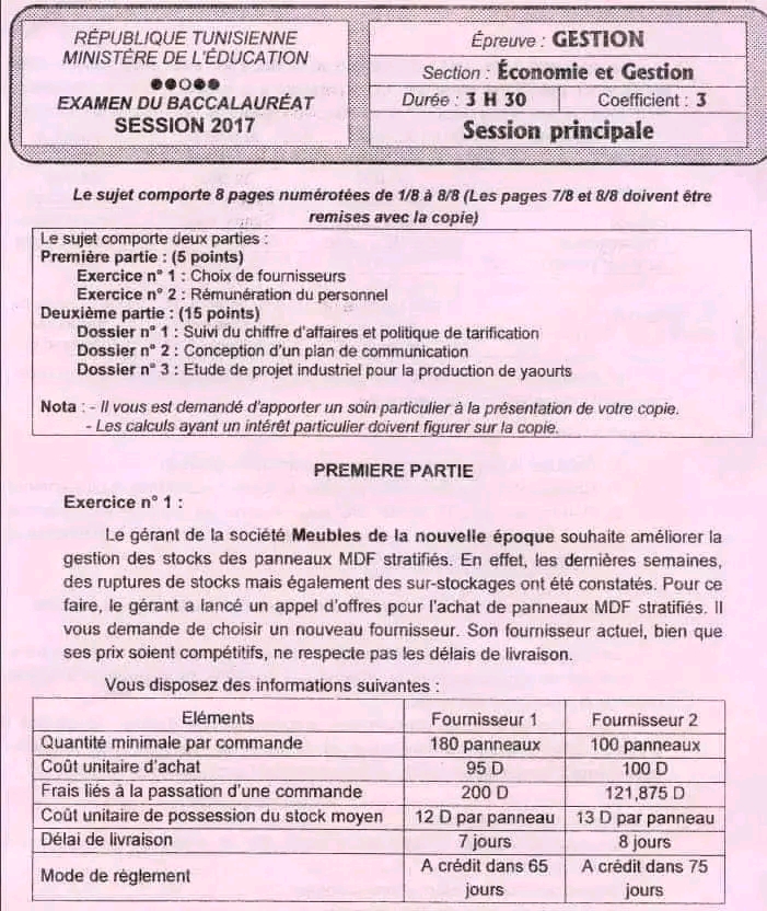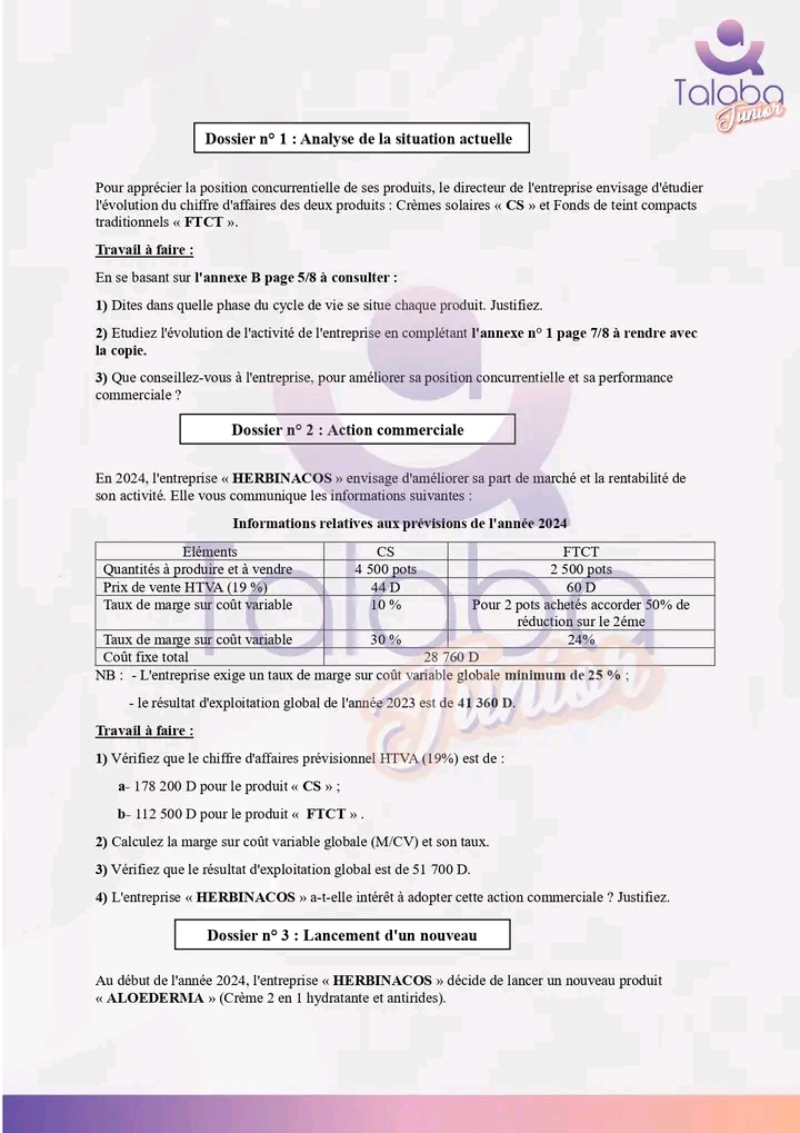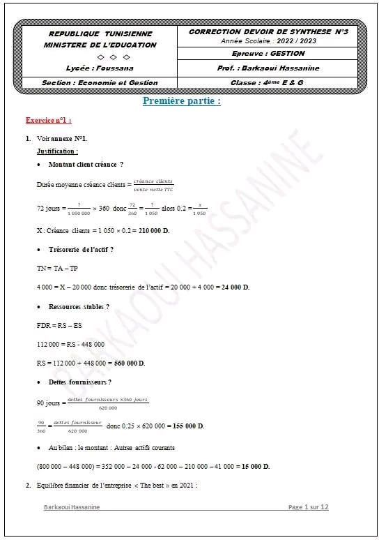 Devoir N°3 avec correction 🌀BAC ECO 🫶🏼