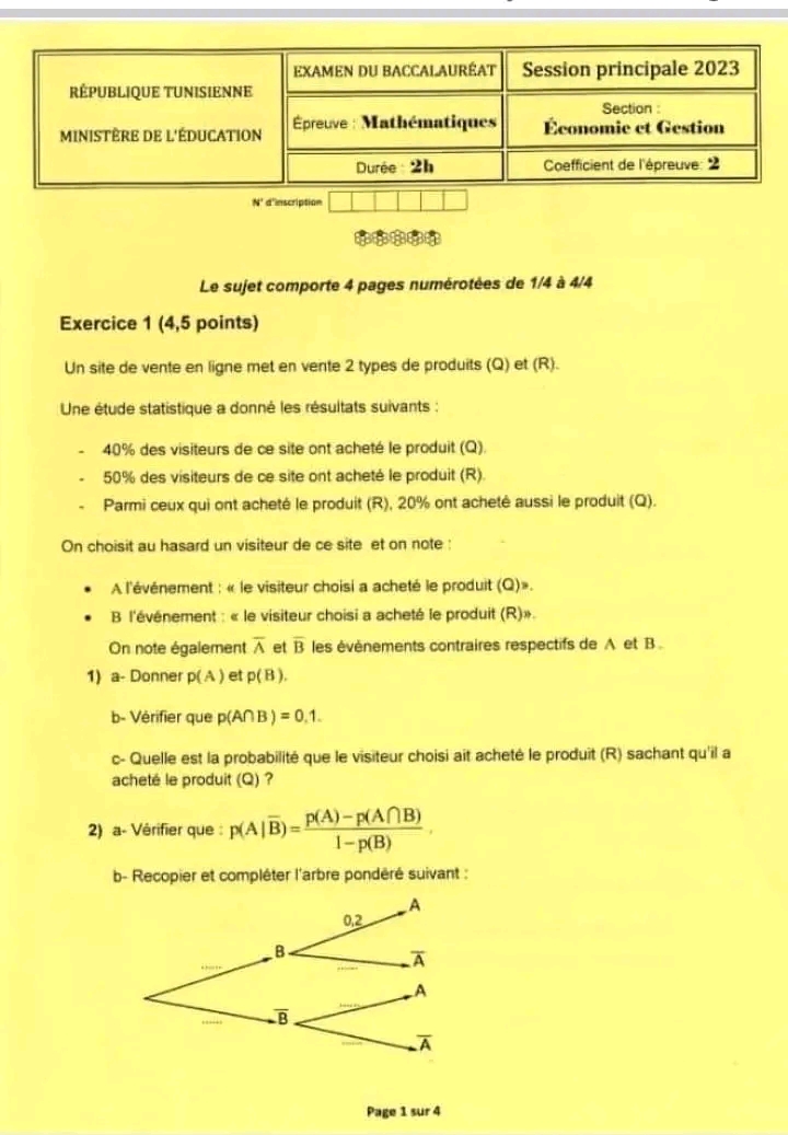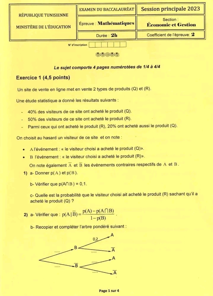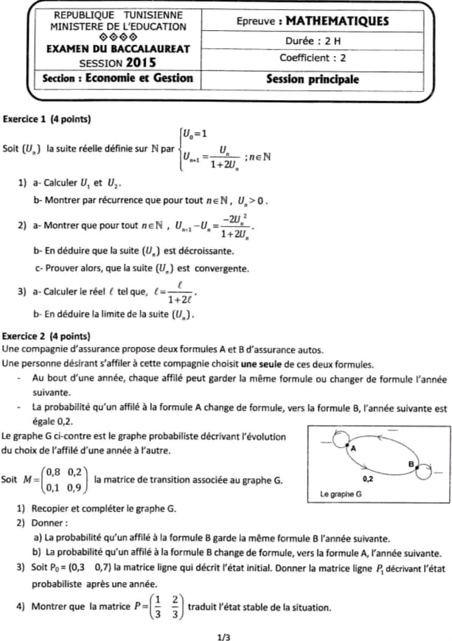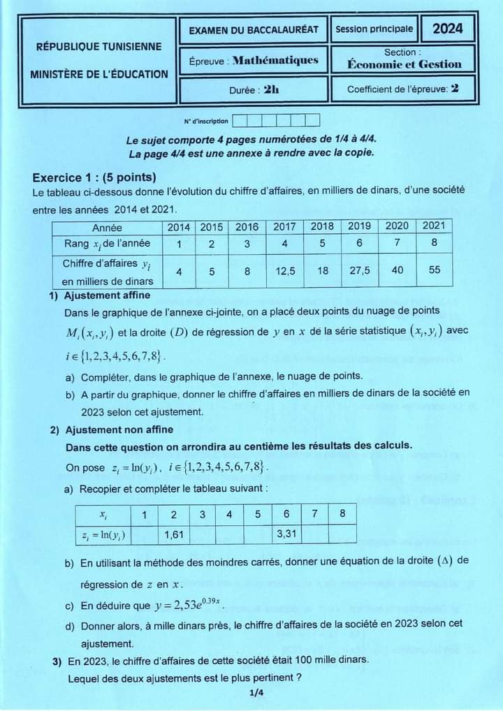 SP ❤️ Section : Economie et Gestion 📊 ÉPREUVE : mathématique avec correction ✅