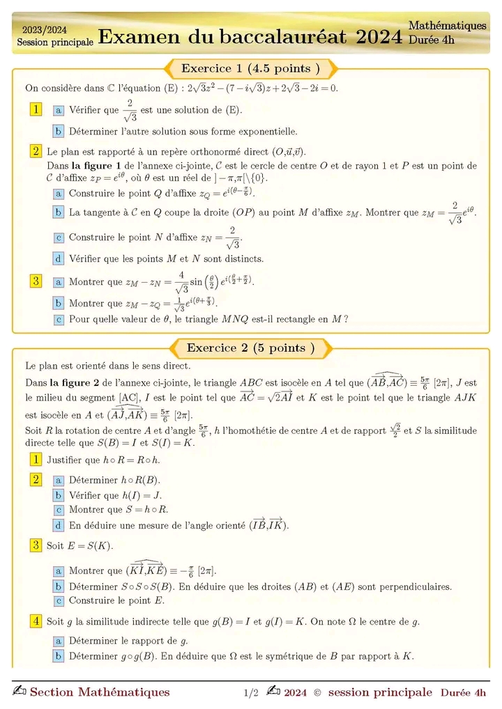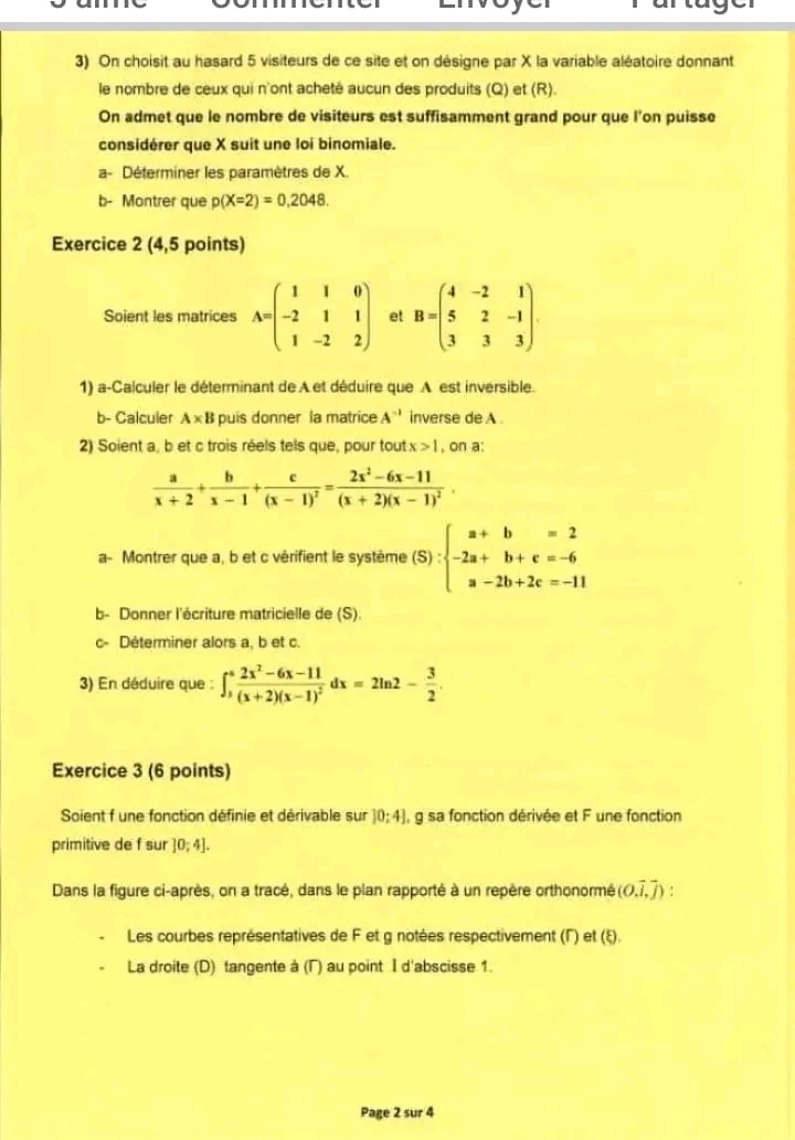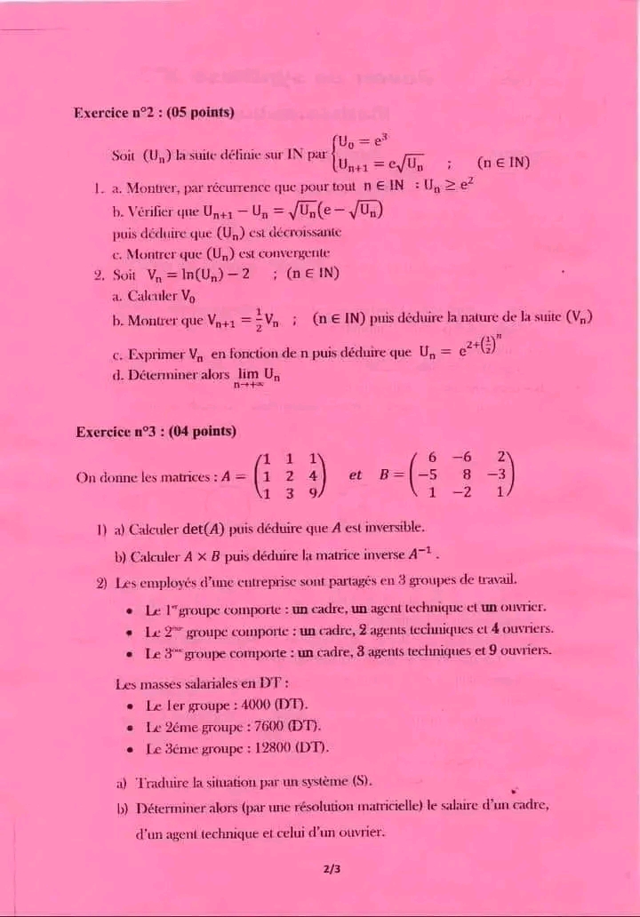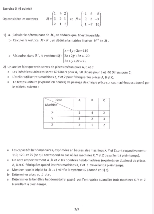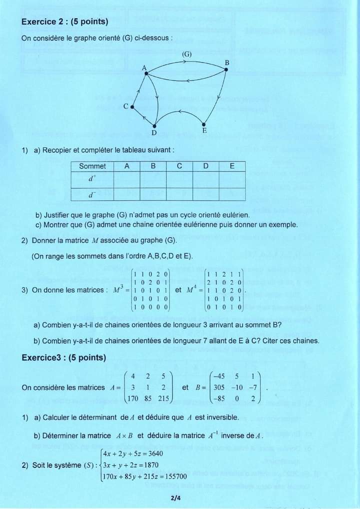 SP ❤️ Section : Economie et Gestion 📊 ÉPREUVE : mathématique avec correction ✅