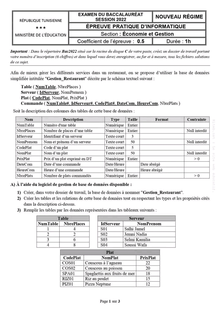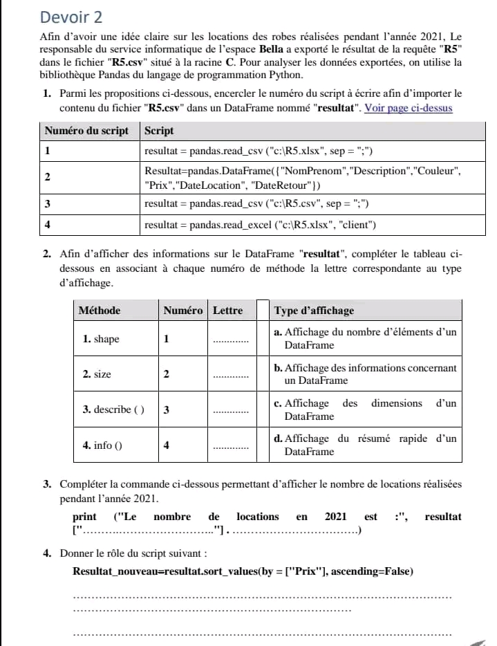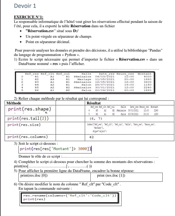 Devoir de contrôle N°1 avec correction 📝