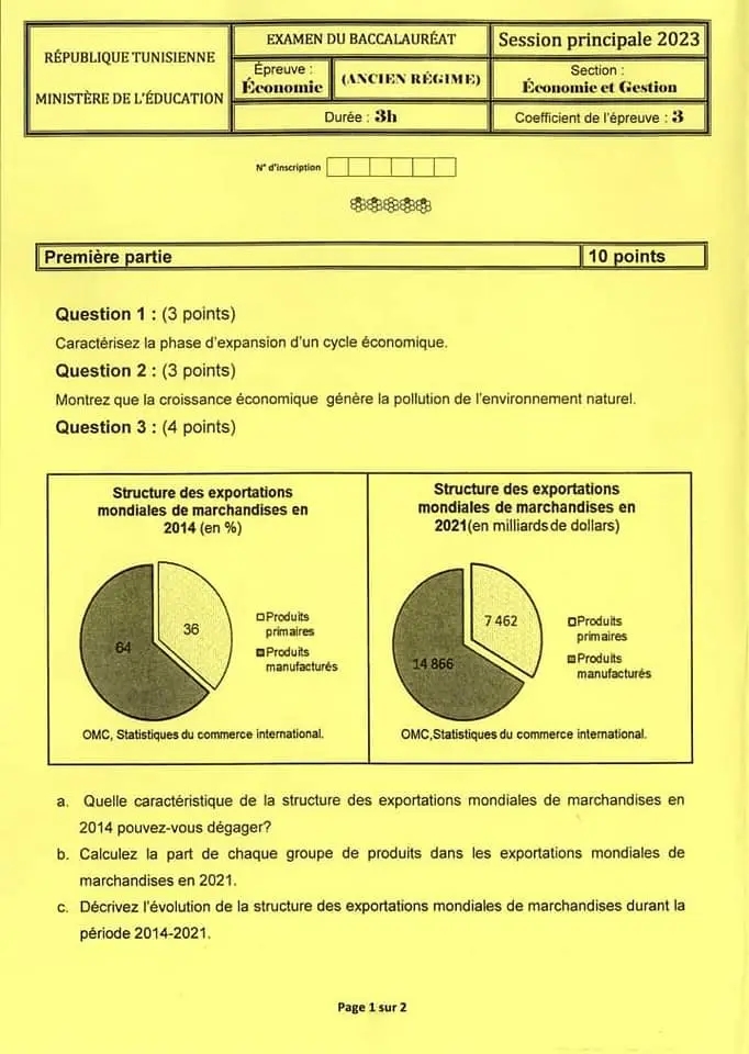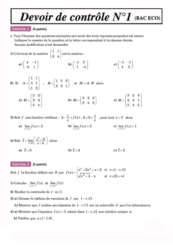 Devoir N°1 avec correction 🌀BAC ECO 🫶🏼