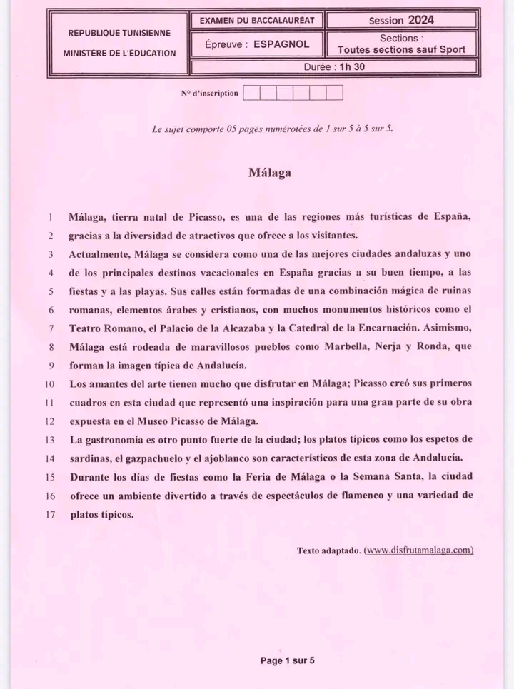 امتحان المادة الاختيارية اللغة الإسبانية - الدورة الرئيسية للبكالوريا 2025